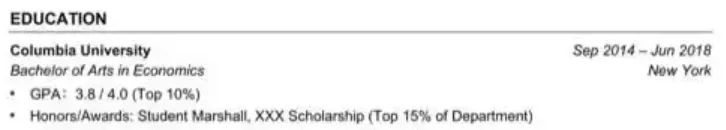 如果你的GPA很有优势,也可以写上;另外,如果你的主修课程和心仪职业的相关度很高,也可以顺带写一笔。