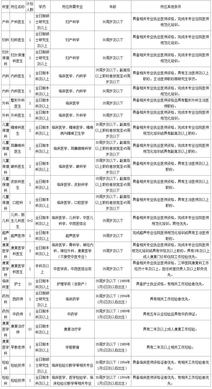 为满足业务发展和工作需要,现面向社会招聘医疗、医技、护理专业工作人员,公告如下: