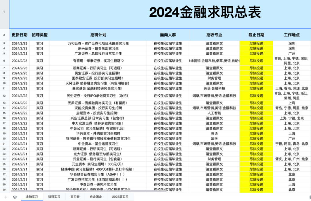 近期中金、中信建投、广发、四大咨询等头部机构都陆续放出了春季日常实习名额!