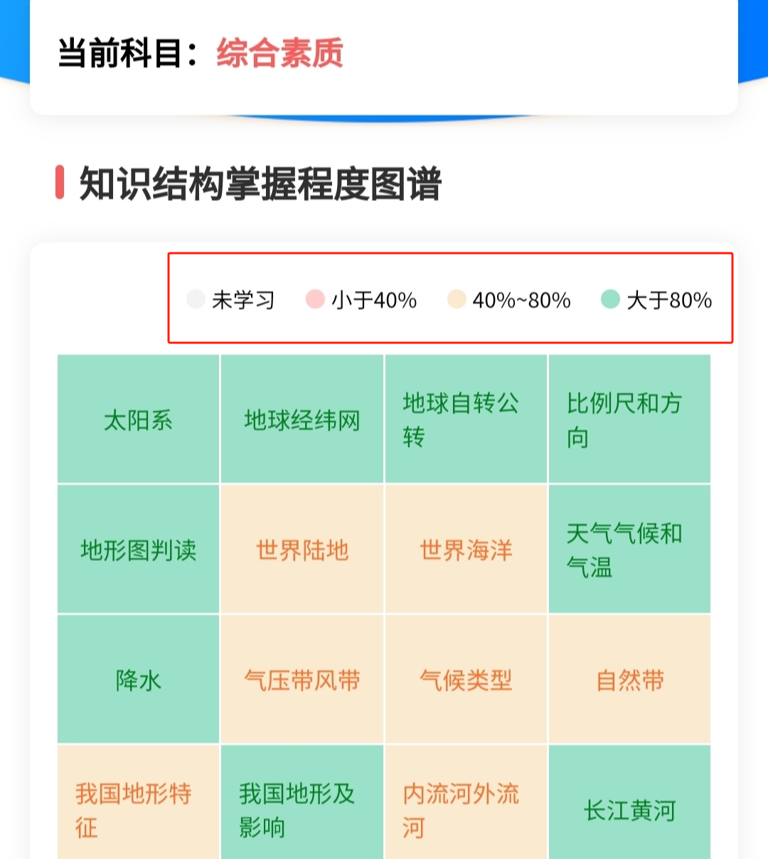 同时,你每个知识点的试题做的如何,都可以通过科目知识点板块看出来,迅速找出薄弱知识点。