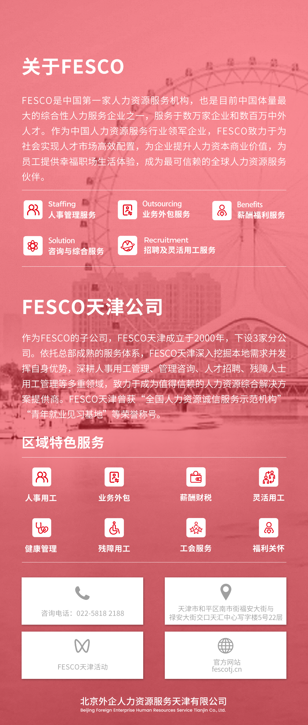 FESCO为您提供灵活的人事用工管理解决方案,帮助企业在不同阶段快速构建人事服务能力,提升合规水平。通过一站式的解决方案,全方位覆盖人力资源事务型工作,赋能企业聚焦人力资源的核心职能。