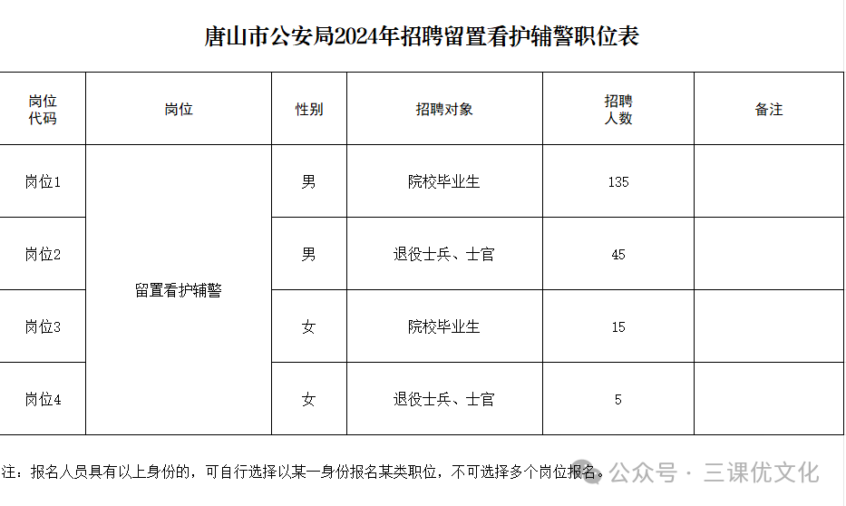 附件:唐山市公安局2024年招聘留置看护辅警职位表