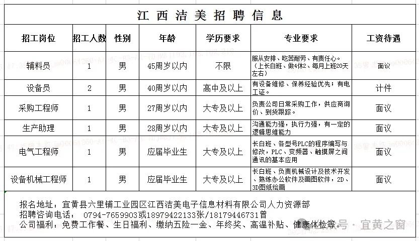 2、流水线操作男工数名:年龄20岁~55岁以下,工作时间9~10小时制,工资5500元~7000元左右,两班倒,能吃苦耐劳,有经验者优先。