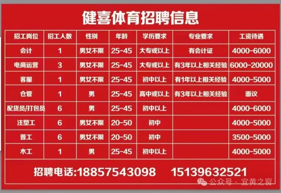 7、文员3名:工资3800~4200元,年龄40岁以下,月休两天,有经验者优先。