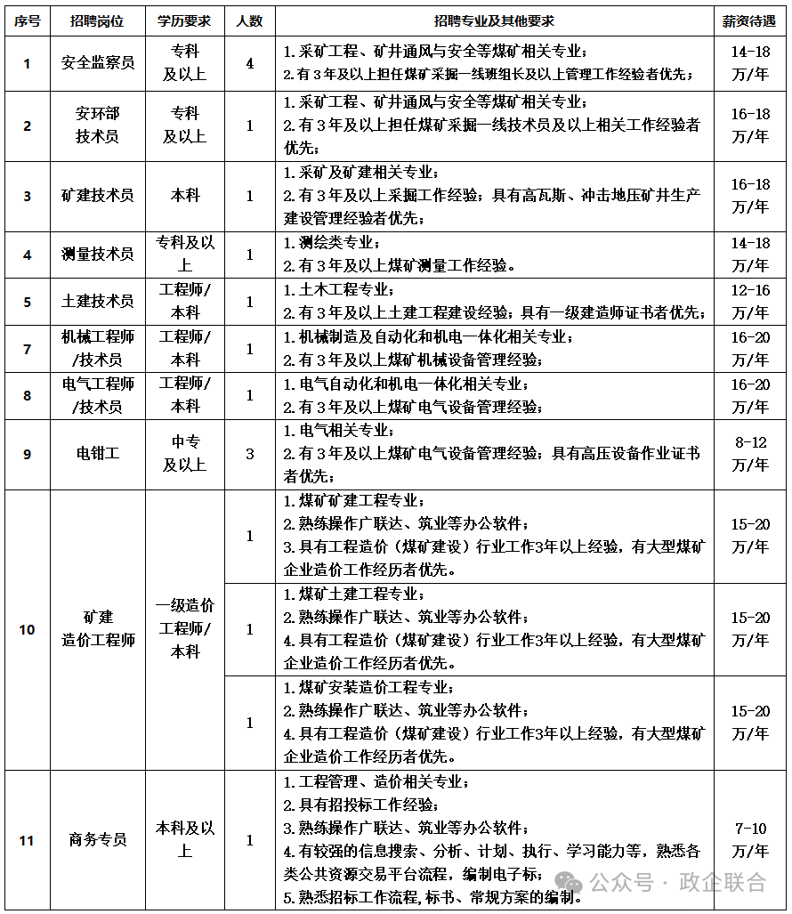 (二)除具备上述基本条件外,应聘人员还须满足相关岗位其它任职资格及条件,详见《甘肃永润煤基新材料集团有限公司2023年度社会招聘岗位信息表》。