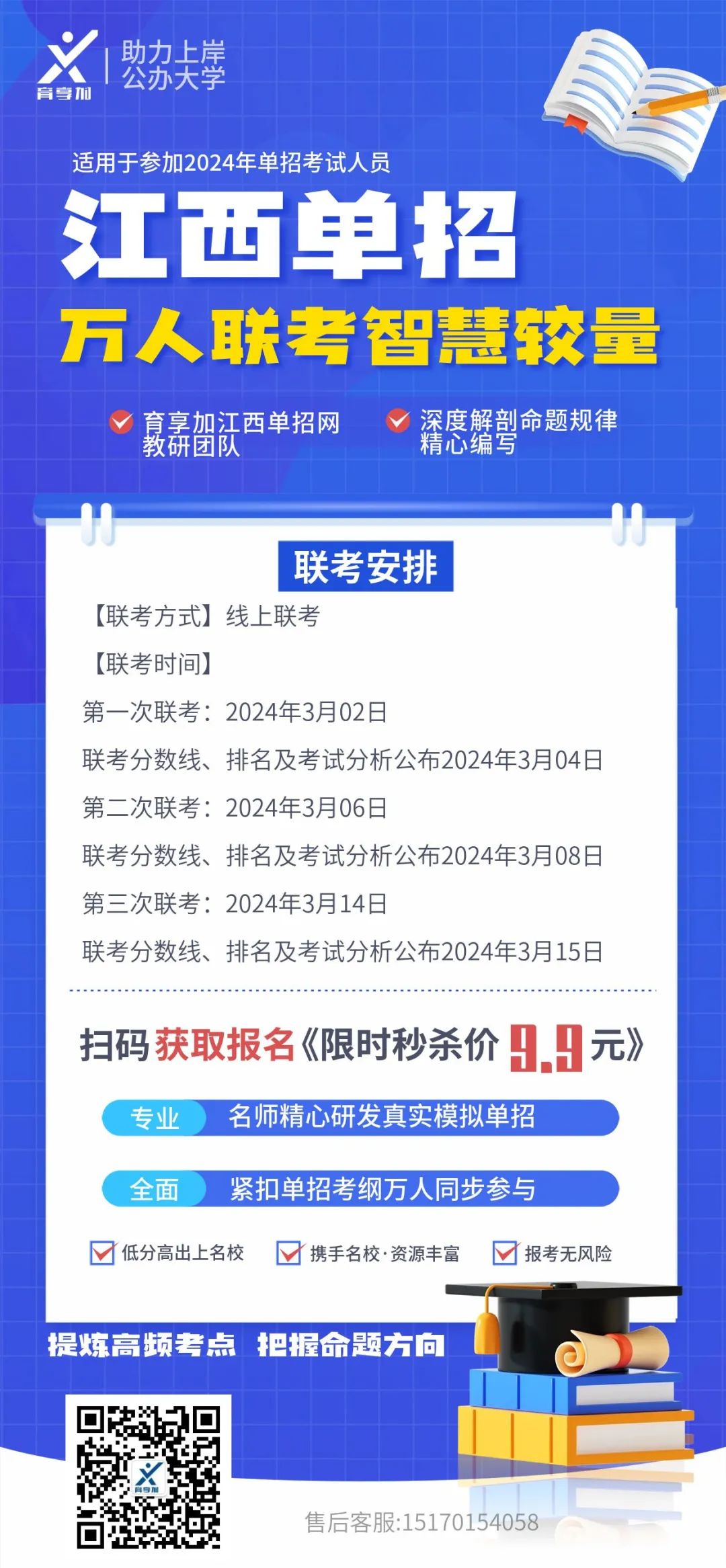 育享加"2024江西单招万人联考"测评即将进入最后一天报名阶段。此次联考测评旨在为江西省的单招考生提供一个专业、全面的评估机会,帮助他们更好地了解自己的学习状况和备考方向。