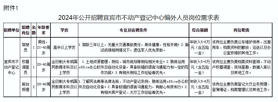 宜宾市不动产登记中心2024年第一次公开招聘编外人员的公告