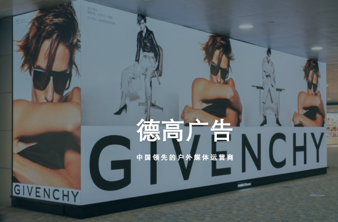 德高集团于2005年进入中国内地市场,随着中国户外广告市场的高速发展,德高在中国的表现已成为集团在全球市场中的一个亮点。作为中国领先的户外广告公司,德高中国在地铁媒体、巴士媒体、机场媒体以及街道设施媒体四大领域内提供最佳服务。