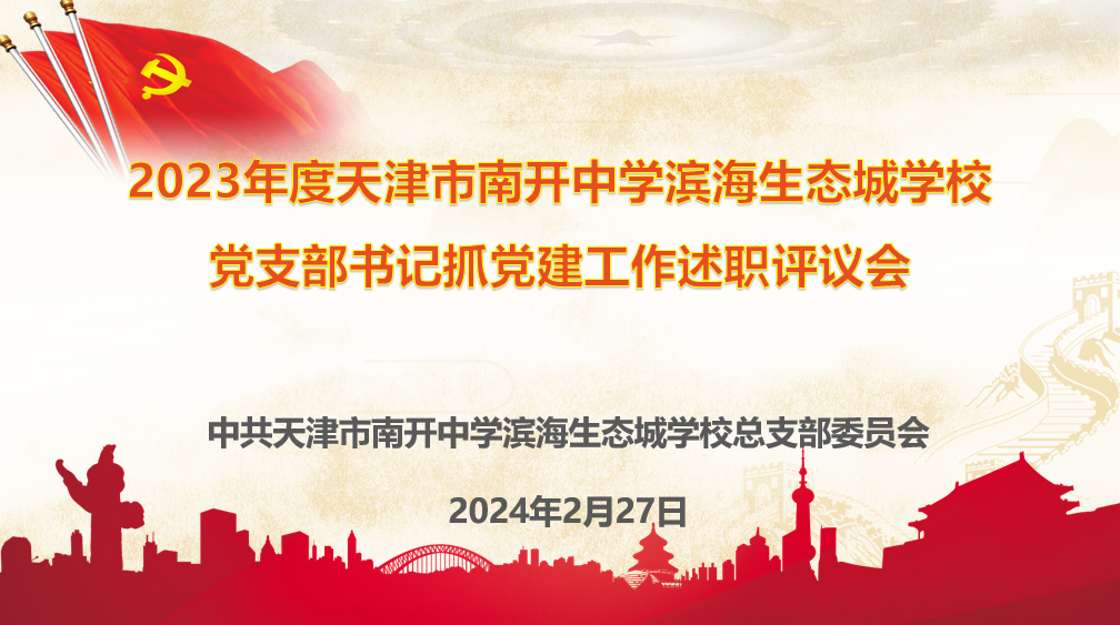 为进一步推动基层党组织建设,压紧压实基层党组织书记抓党建第一责任人责任,按照滨海新区教体局党委《2023年度教体系统基层党组织书记抓党建工作述职评议考核实施方案》要求,2月27日,2023年度南开中学滨海生态城学校党支部书记抓党建工作述职评议会在学校报告厅召开。参加本次会议的有教体局宣传教育室(德育)副主任王建军、学校党总支委员、党员代表和群众代表。