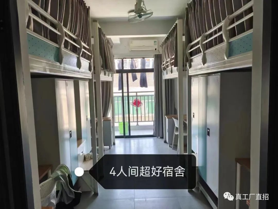公司为员工免费提供食宿;干净卫生的就餐环境及丰富的餐点种类.宿舍配有空调、洗衣机、干衣机、电视房、料理房等设施。