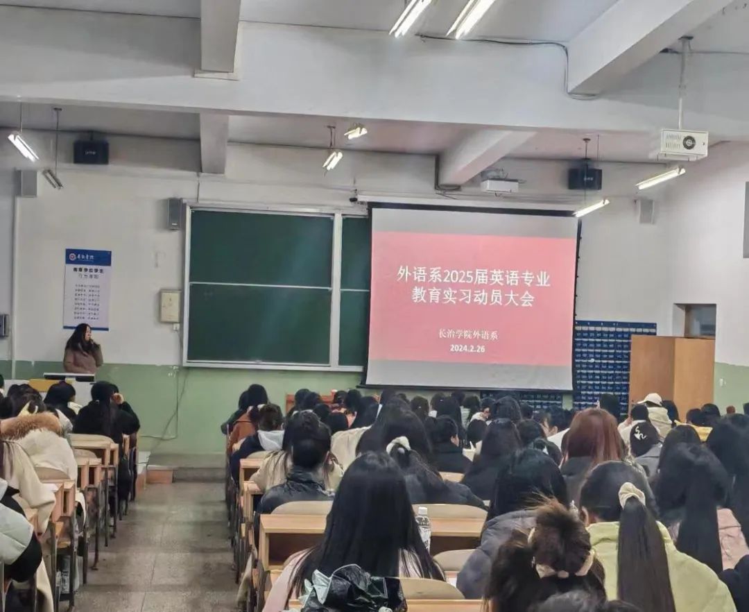 奋斗是青春最靓丽的底色,行动是青年最有效的磨砺。通过此次教育实习动员大会,同学们更加深入地感受到了实习的重要意义,从而明确自己的目标,找到自己努力的方向。希望每一位同学都能够以更加严谨到态度、更加扎实的基础、更加积极的精神不断学习,不断进步,在实践中收获、成长。相信外语系2025届英语专业全体师范生定将谨遵老师们的谆谆教导,以良好的状态和饱满的精神,迎接挑战,勇创佳绩!