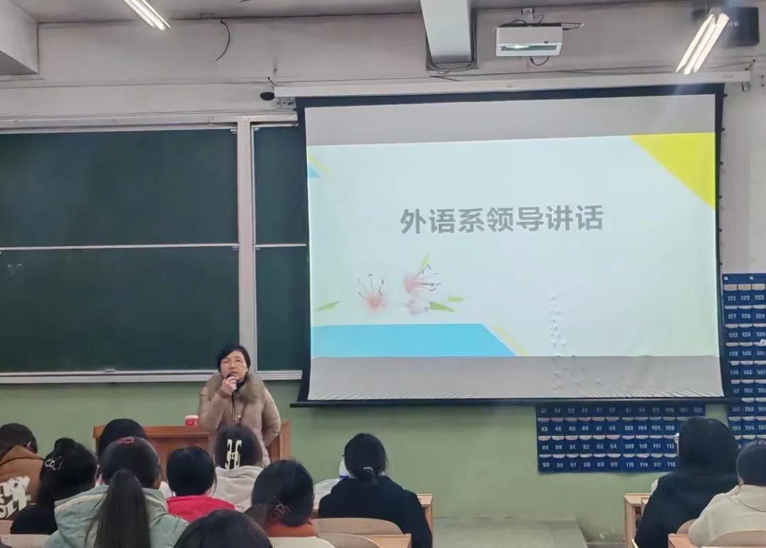 “纸上得来终觉浅,绝知此事要躬行”,教育实习是英语专业人才培养的重要组成部分,是师范生走上工作岗位的必经阶段,也是师范生学习教育教学实践技能和积累经验的宝贵机会。为进一步锻炼我系英语专业学子实践能力,我系于2月26日晚19:00在2号楼102教室召开2025届英语专业教育实习动员大会。本次大会由英语专业负责人闫美荣老师主持,教学副主任马丽娅老师,专职辅导员平渊、李桦以及 2025 届毕业生参加。