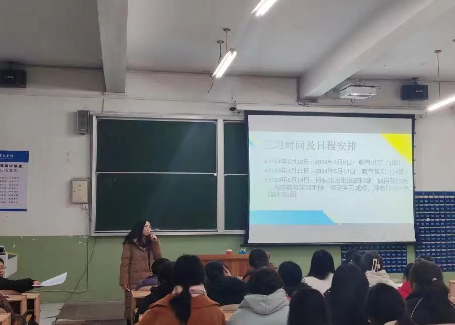 会议伊始,马丽娅老师发表重要讲话,强调了教育实习的重要性和必要性,同时详细解答了同学们普遍关心的问题。