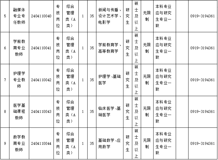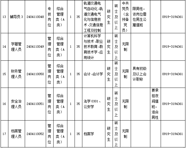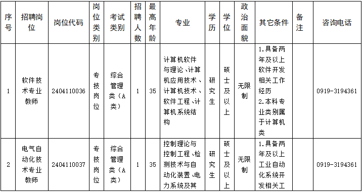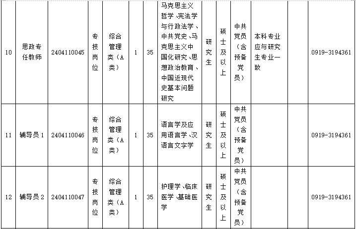 咨询电话:组织人事处 0919-3194361