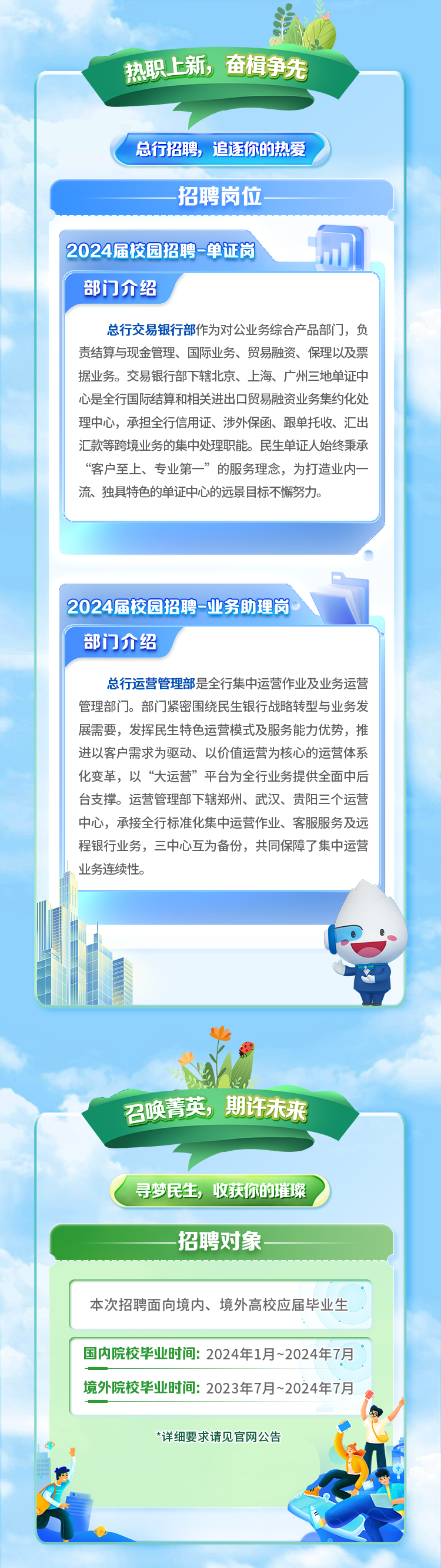 中国民生银行总行2024届校园招聘来啦