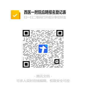 1.网上报名,请有意向且符合条件者,扫描下方二维码填写个人信息,并将个人简历、身份证复印件、毕业证书、学信网学历认证、资格证书等电子版和应聘报名表(点击“阅读原文”即可查看)发送至邮箱xyfyhr@163.com,邮件标题为(“应聘科室岗位+姓名”)。