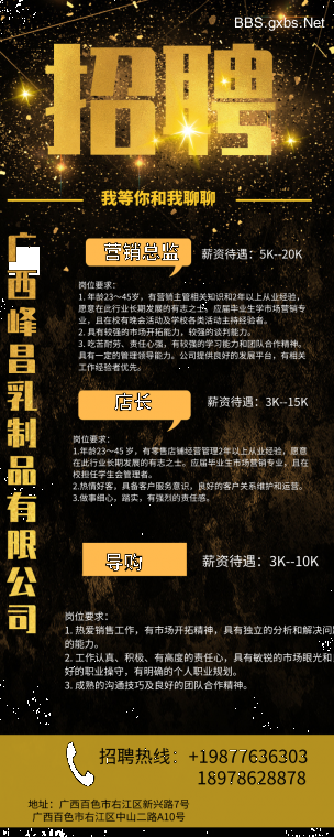 面试时间地点:百色市中山路与新兴路交汇金牌大酒店4楼办公室