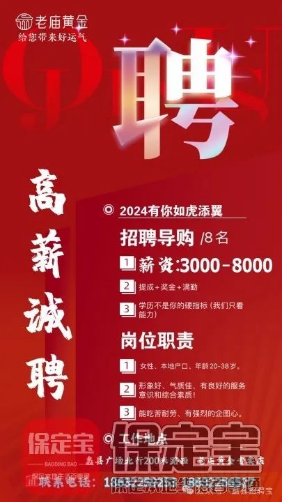 岗位详情:【招聘】老庙黄金(蠡县店)招贤纳士🫰