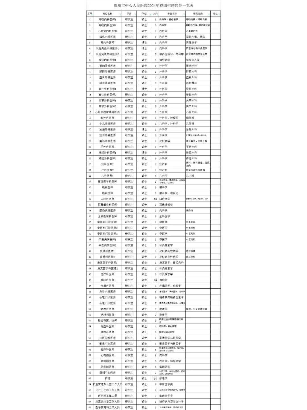 >24年枣庄滕州市中心人民医院招聘203人!