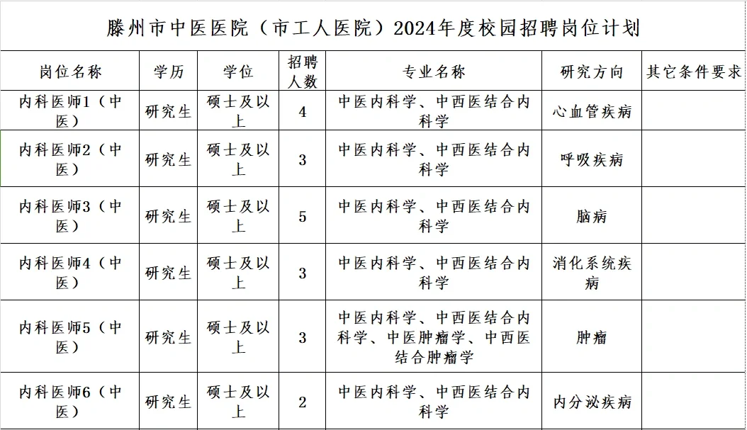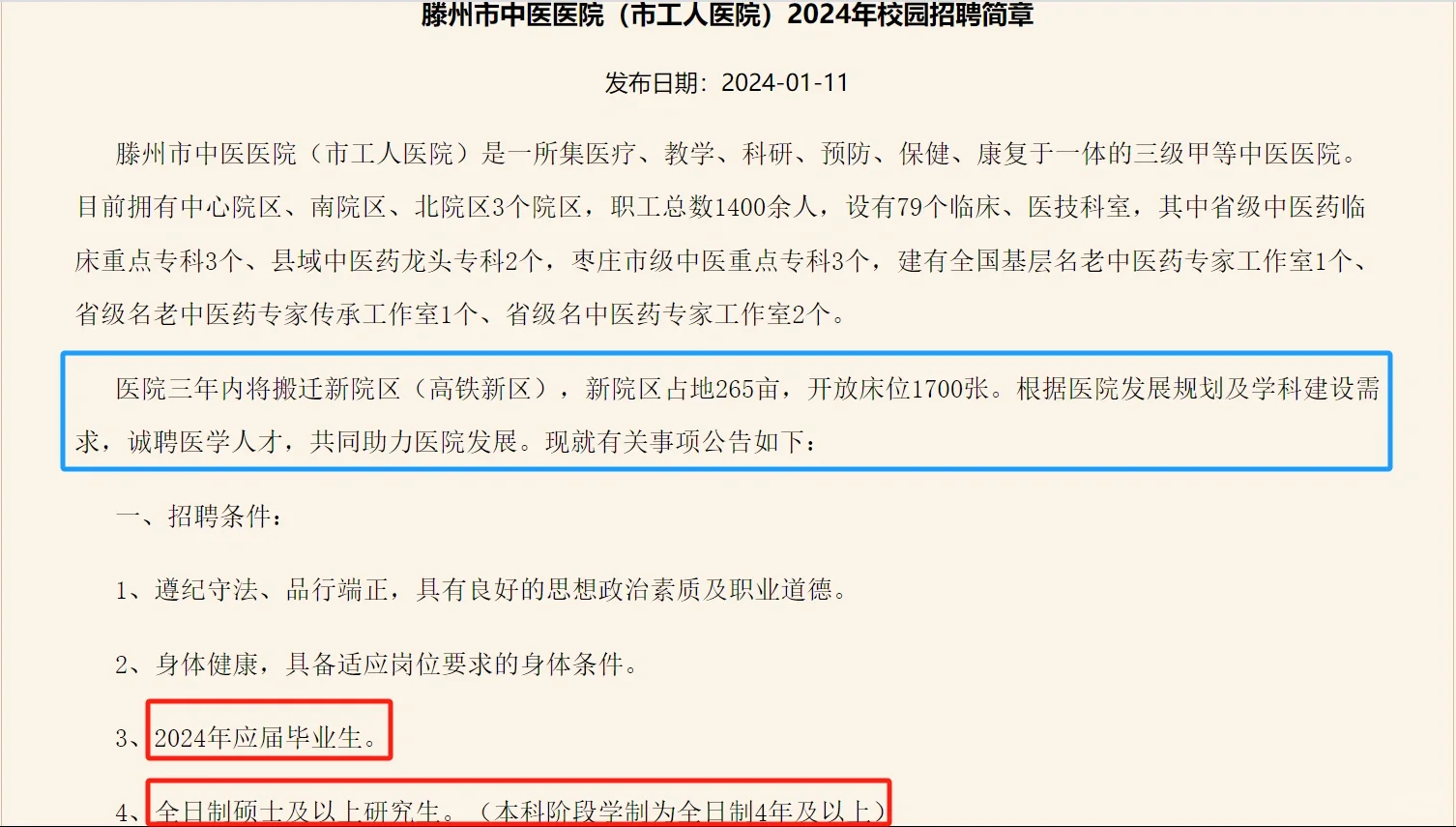 >滕州市中医医院(市工人医院)2024年校园招聘