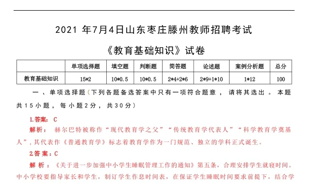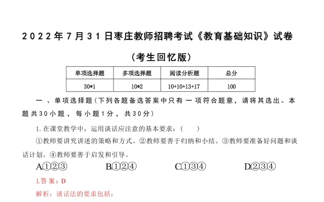 枣庄教师编近四年笔试试卷回忆版真题试卷