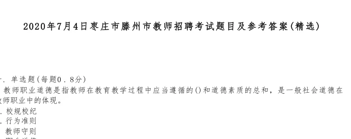 >枣庄教师编近四年笔试试卷回忆版真题试卷