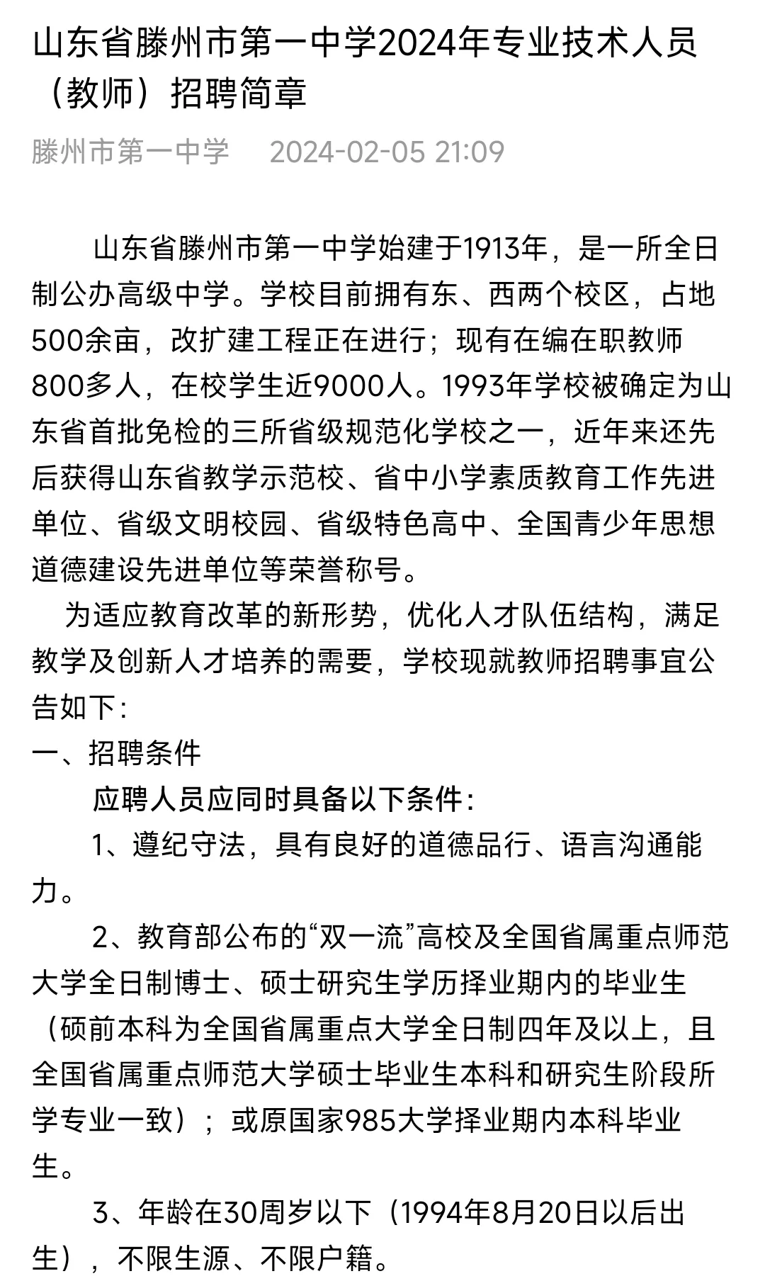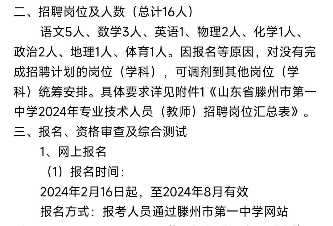 教师编招聘2024滕州一中