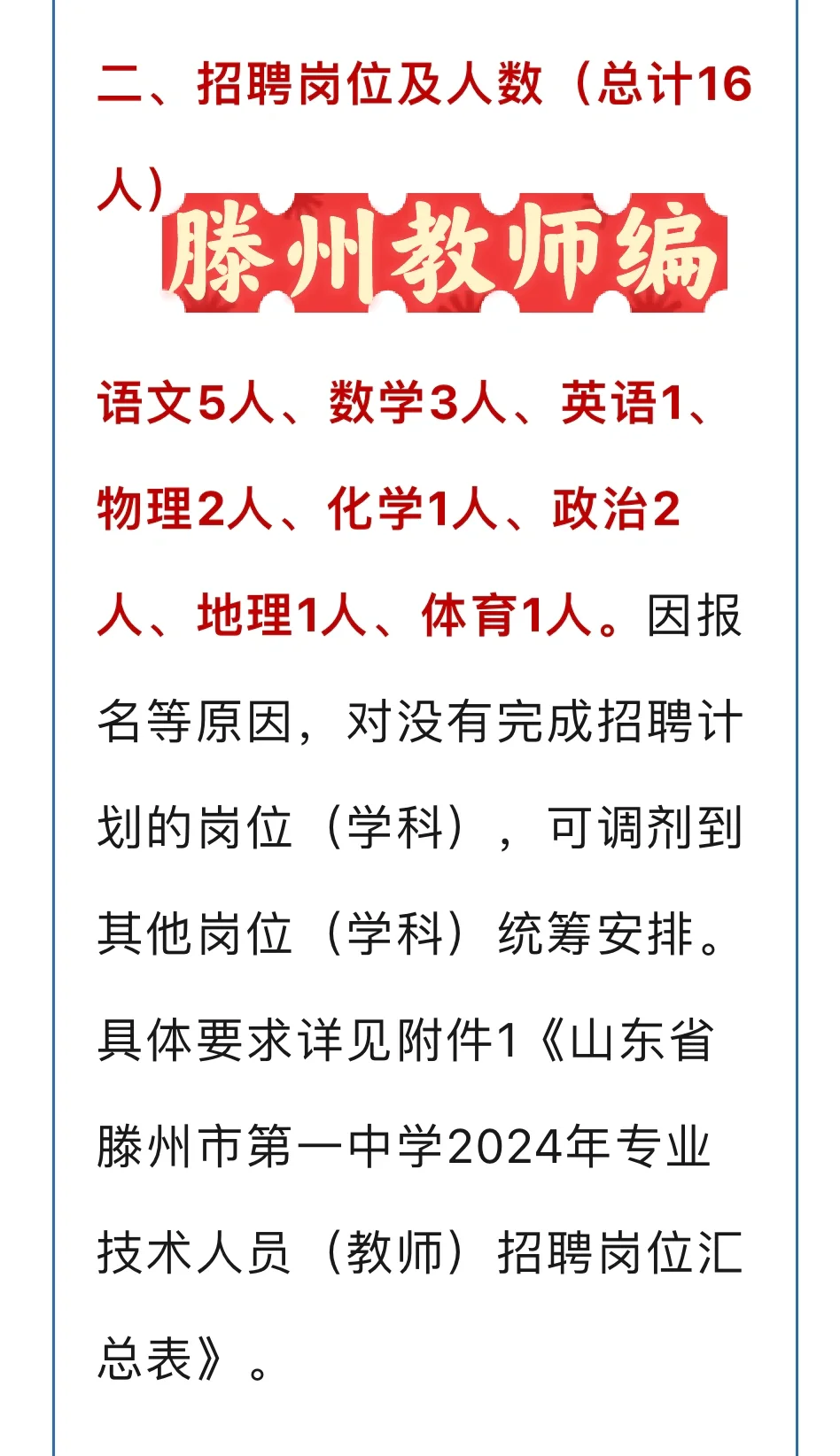 >教师编招聘2024滕州一中