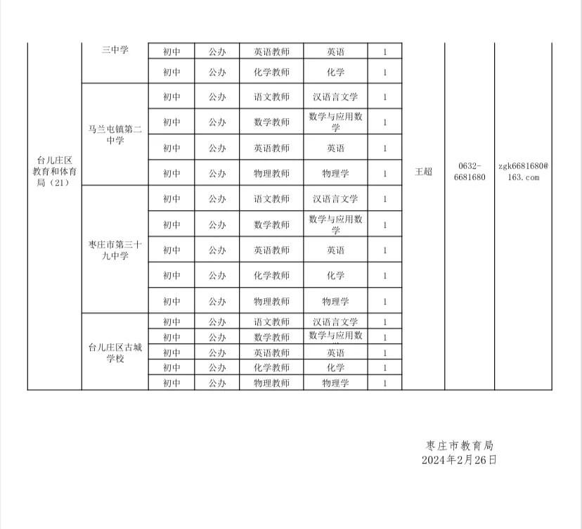 枣庄本地招聘教师16人!事业编制!