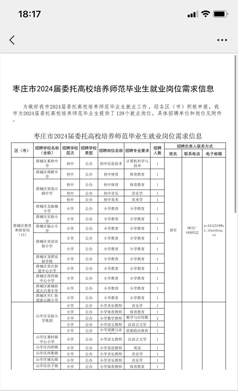 枣庄教师编出了之滕州一中招16个备案制