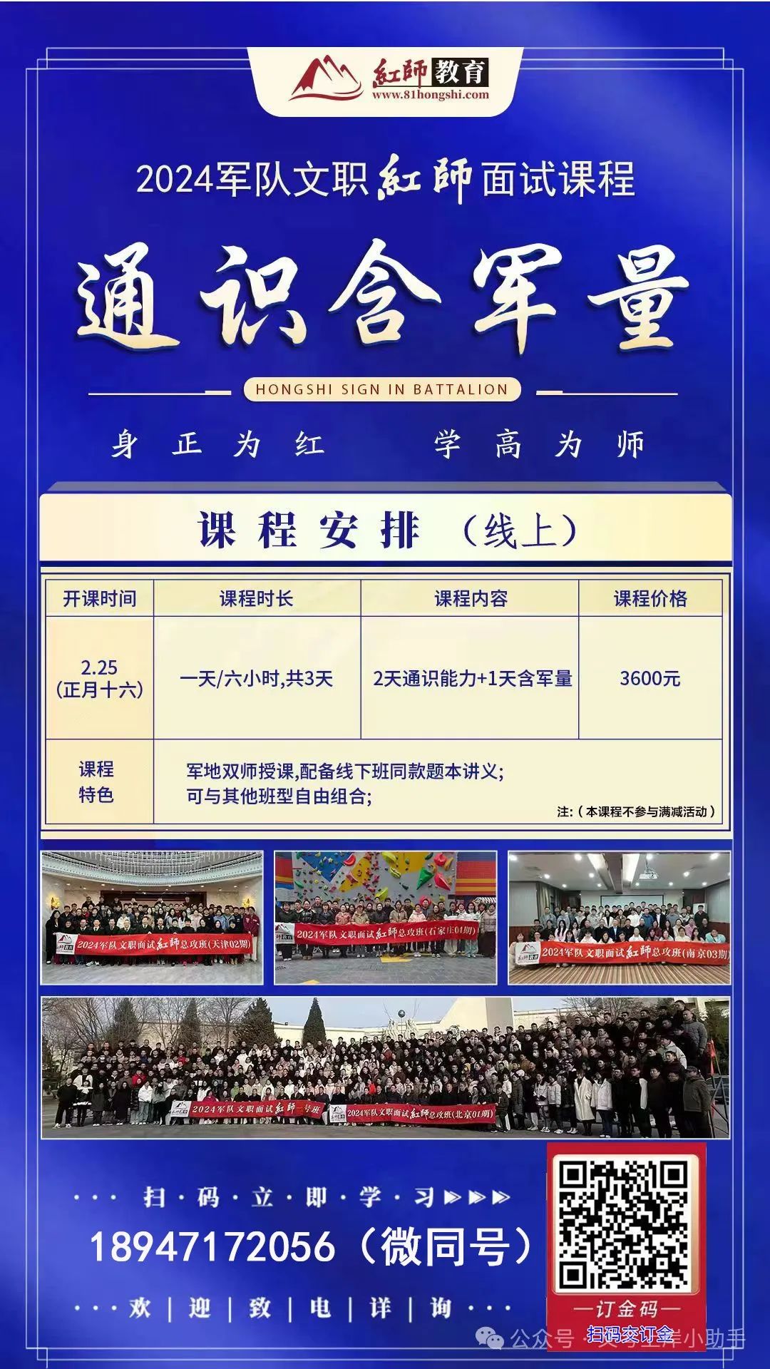 共四天,每天6小时,前两天通识能力,第三天含军量,第四天专业部分,讲练结合。送线下班通识部分同款纸质讲义与题本,顺丰邮寄。