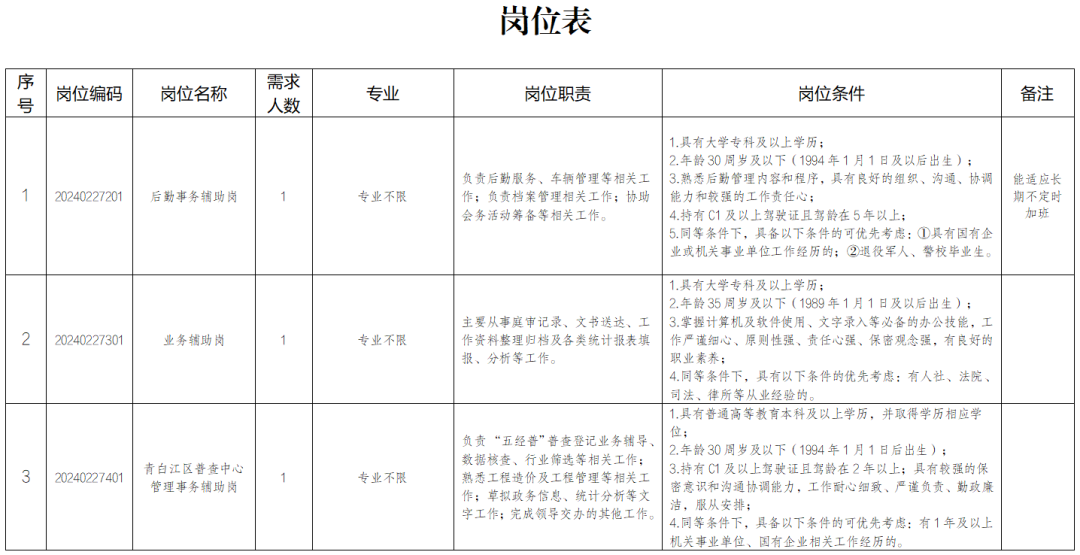 具体岗位和名额详见《岗位表》(详见附件1)。