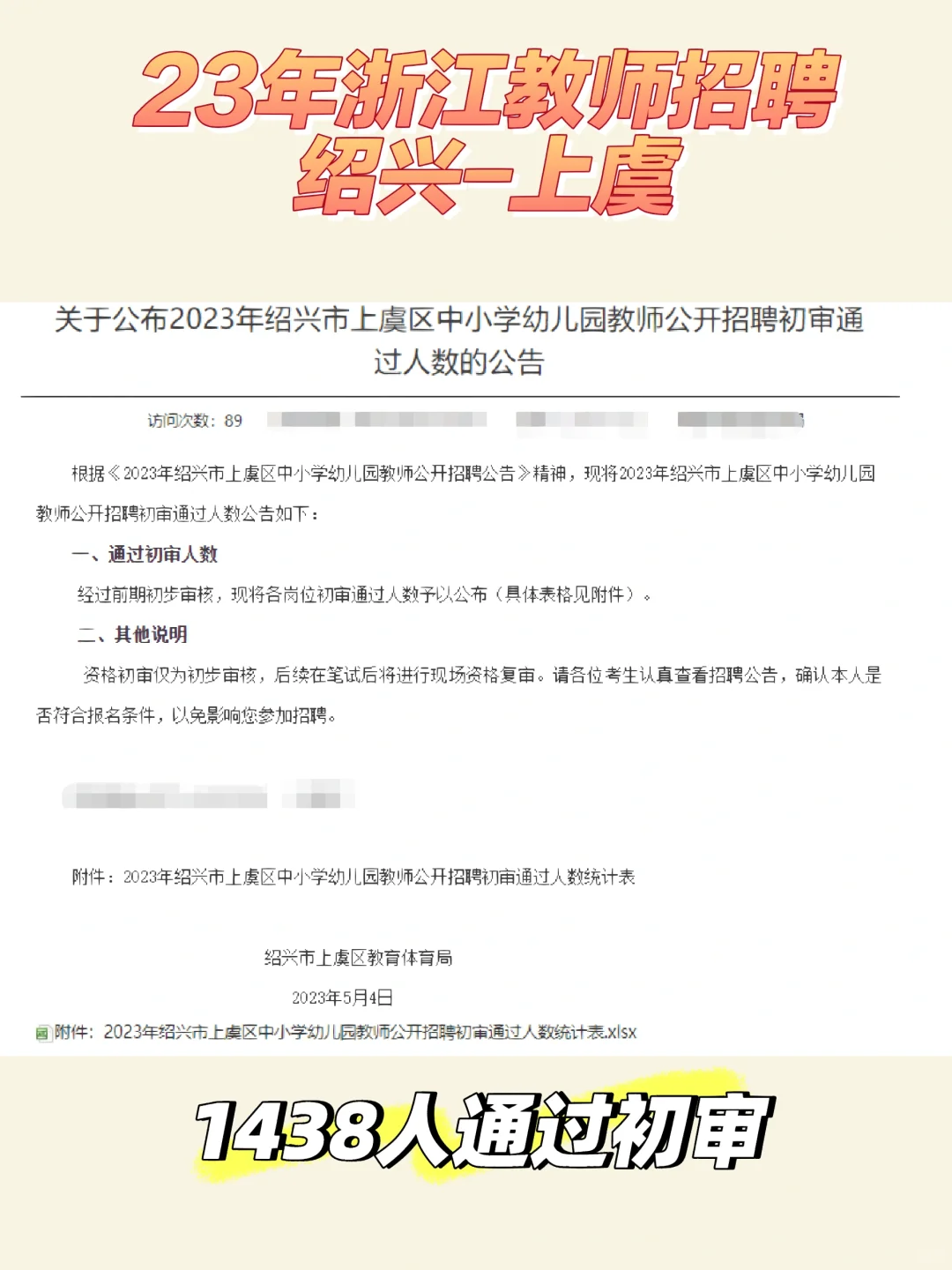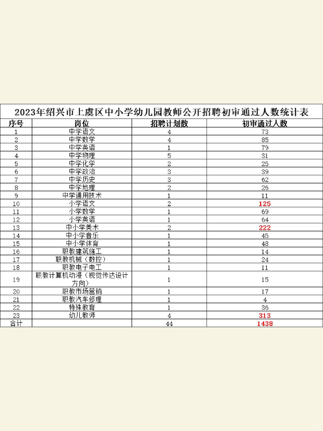 📣关于公布2023年绍兴市上虞区中小学幼儿园教师公开招聘初审通过人数的公告