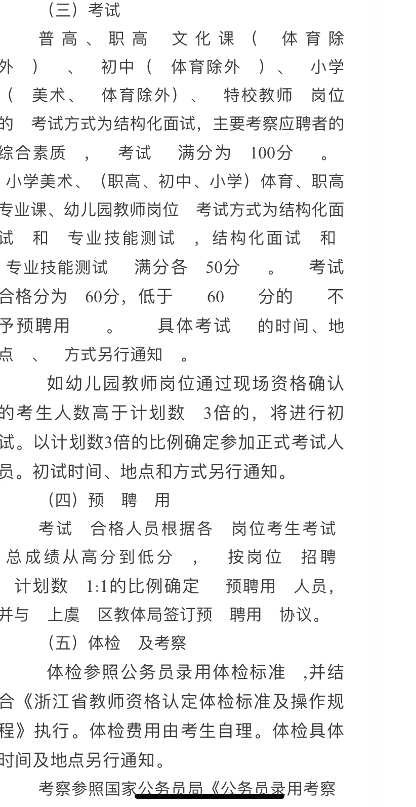小学美术、(职高、初中、小学)体育、职高专业课、幼儿园教师岗位考试方式为结构化面试和专业技能测试,结构化面试和专业技能测试满分各50分。