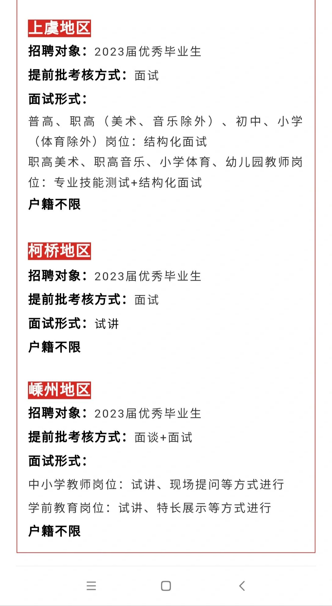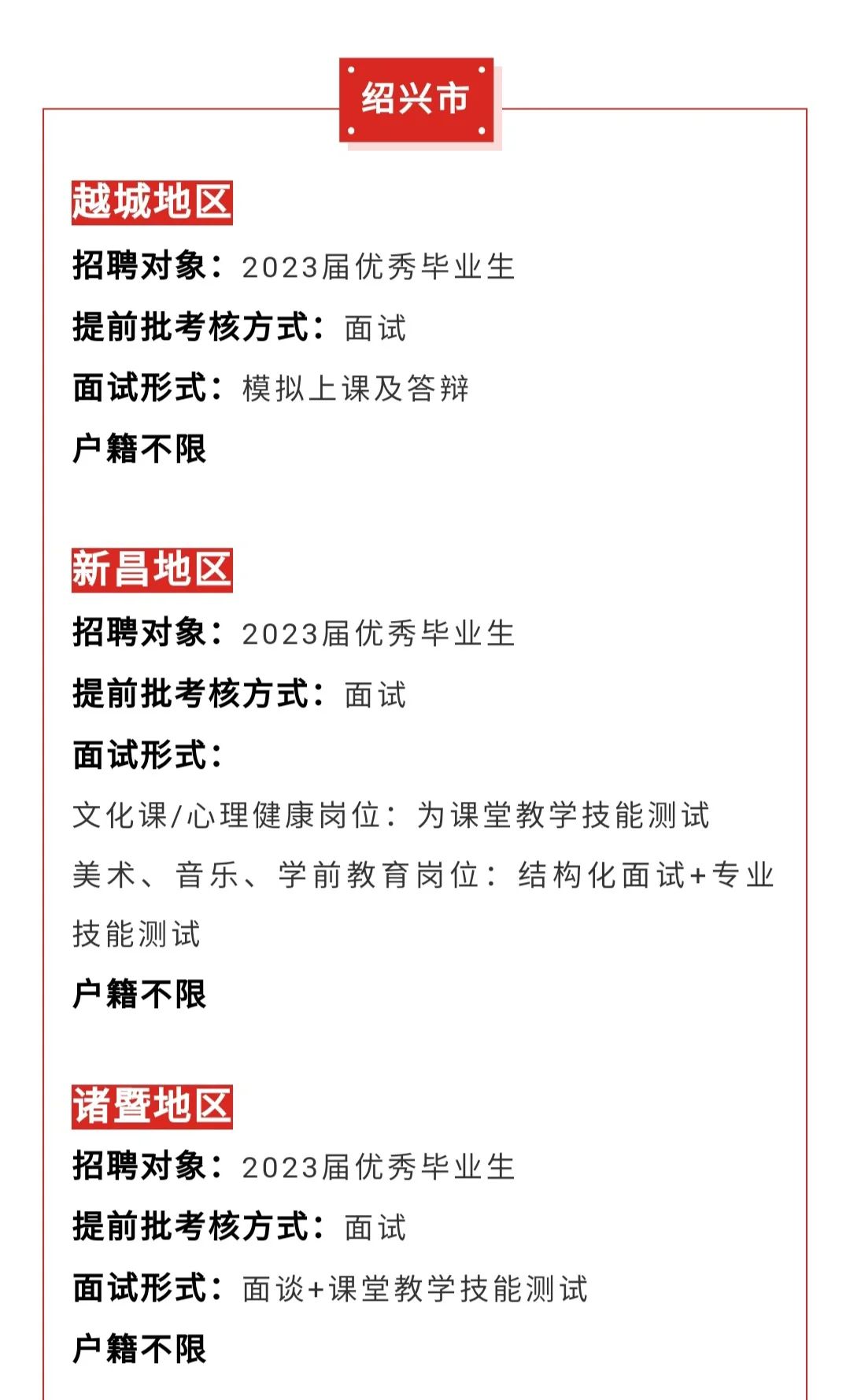 整理了绍兴各区23年提前批的招聘条件和面试考核形式希望可以帮助到大家