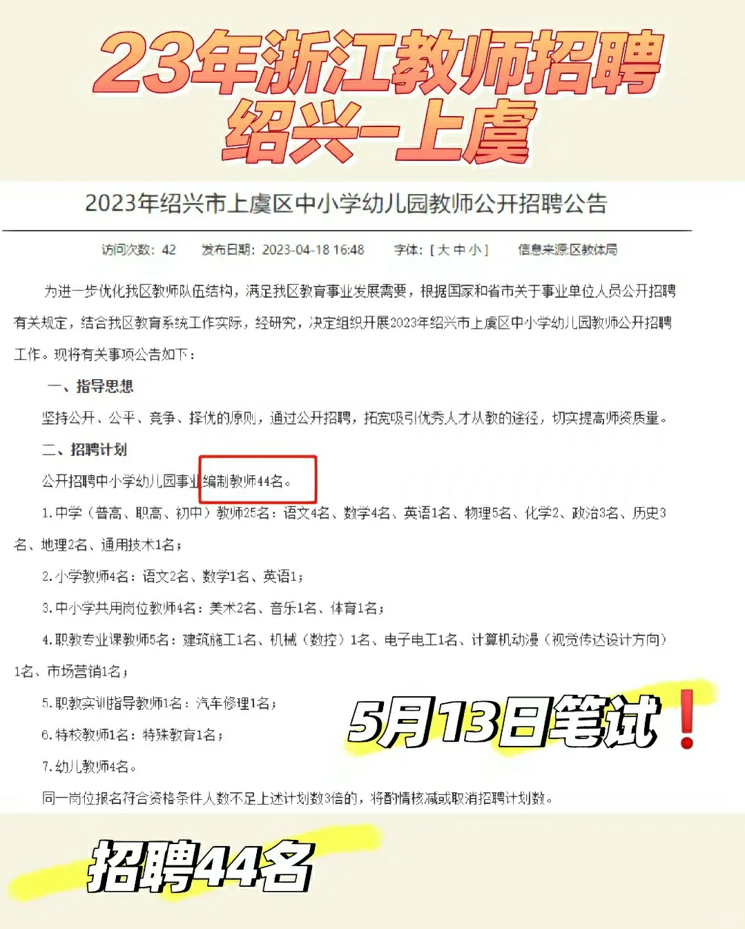 今年上虞教师招聘考试5月13日开考,好消息,中学有25个编制岗位,学前继去年零编制后有了四个编制岗位。坏消息就是小学语文只有两个岗位,小学数学只有一个岗位,招聘数比起往年大跳水了