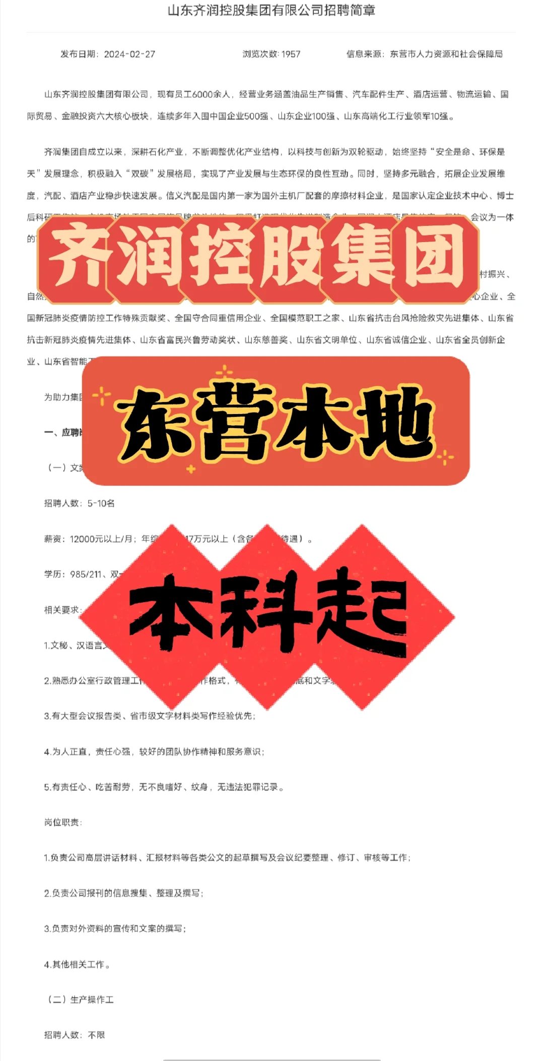 齐润东营本地人应该都知道吧,待遇没得说,把握住机会[萌萌哒R]