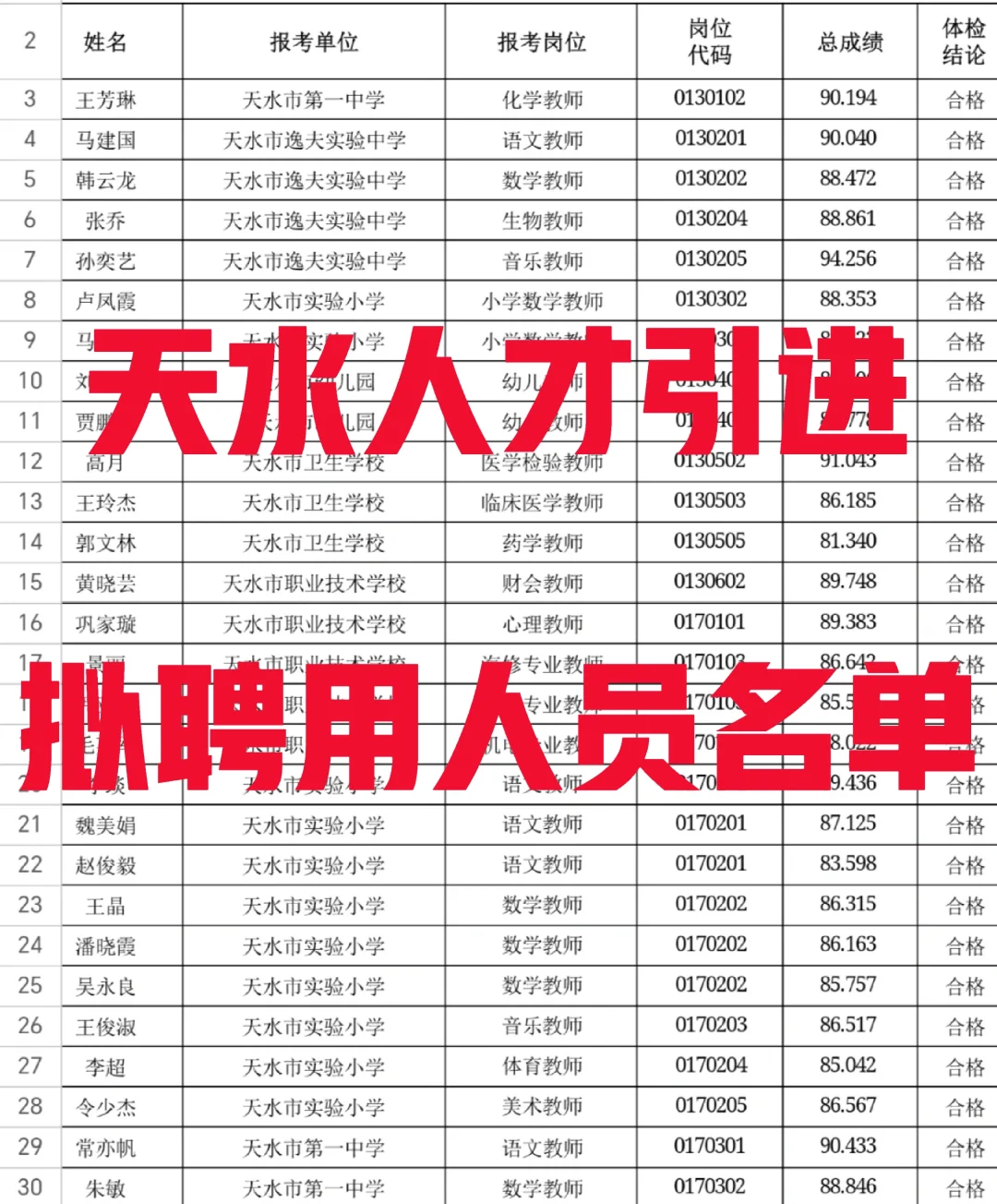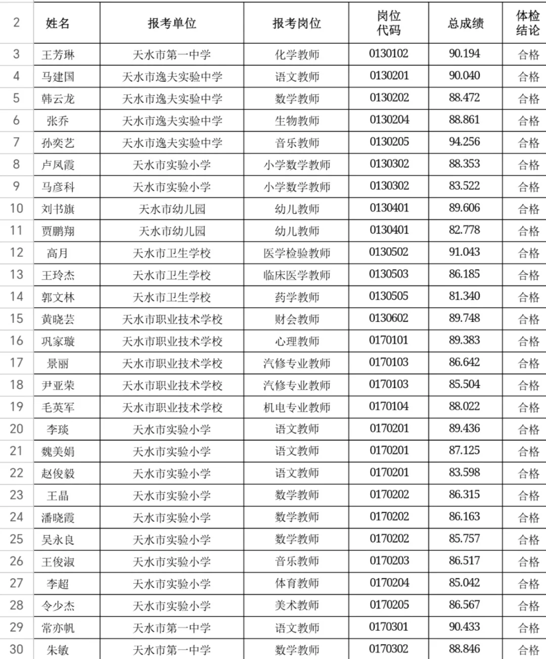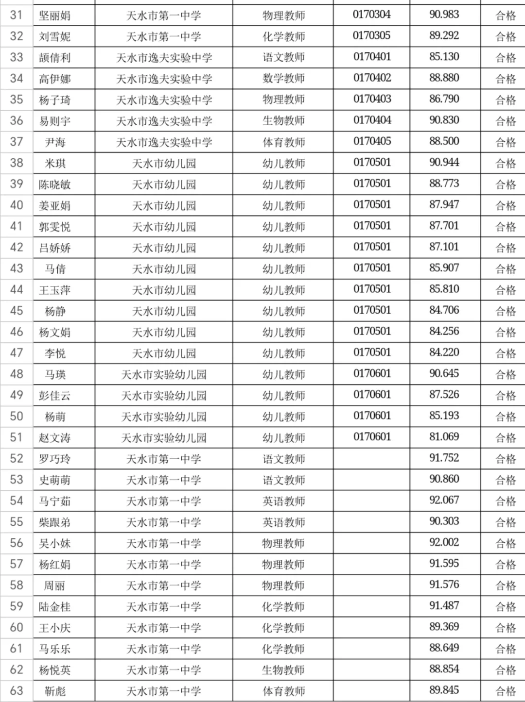 🍎2024年天水甘谷第一批人才引进面试成绩