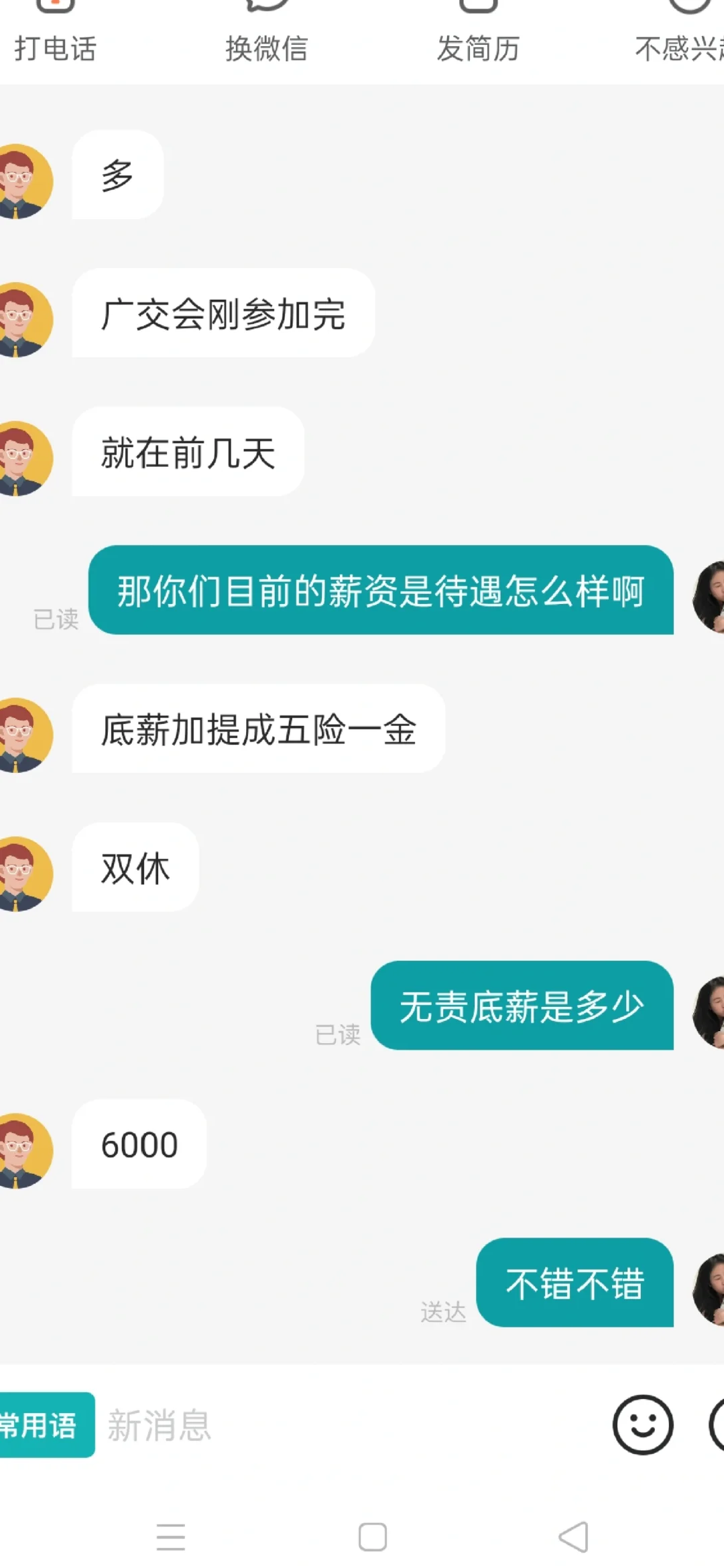 外贸业务员无责底薪6000,双休五险一金。目前感觉不错了