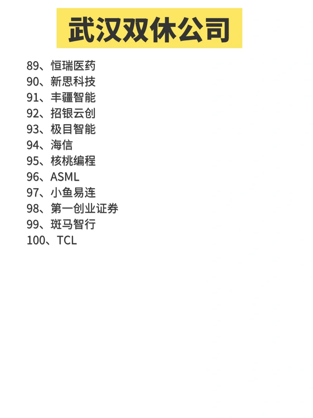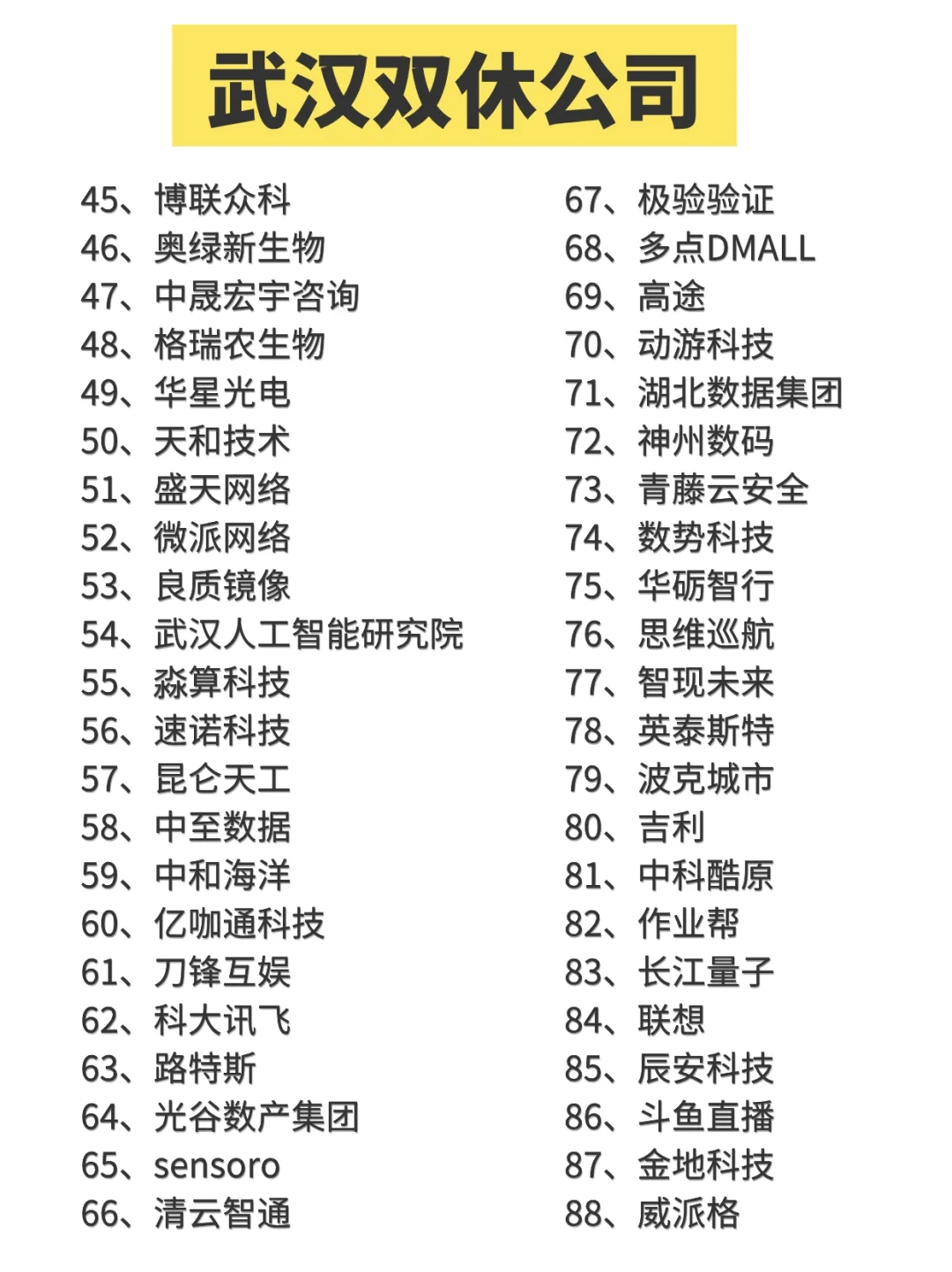 近期看了一些武汉双休的公司,可以看看,希望大家都能拿到满意的offer~