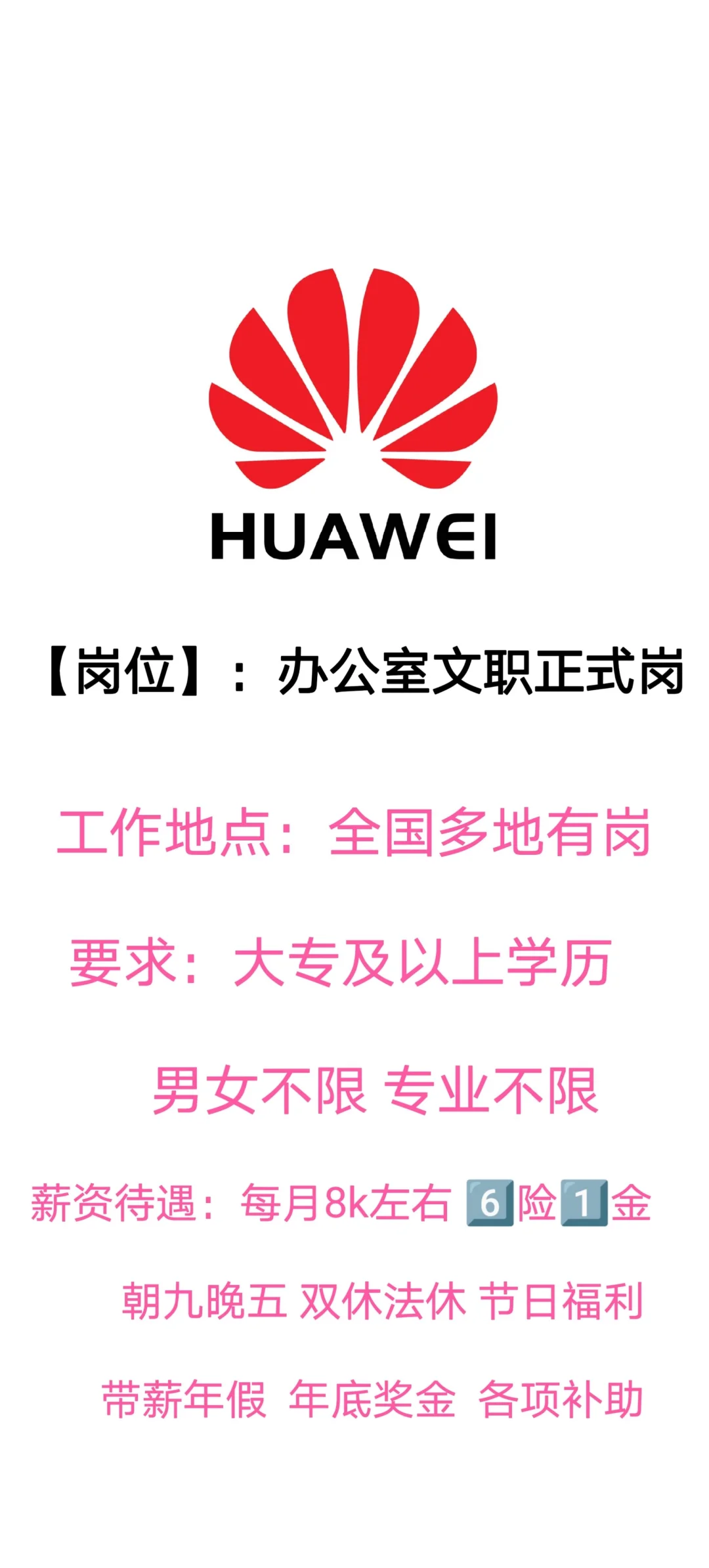 哇塞,华为开始招聘正式员工啦,真的是个惊喜