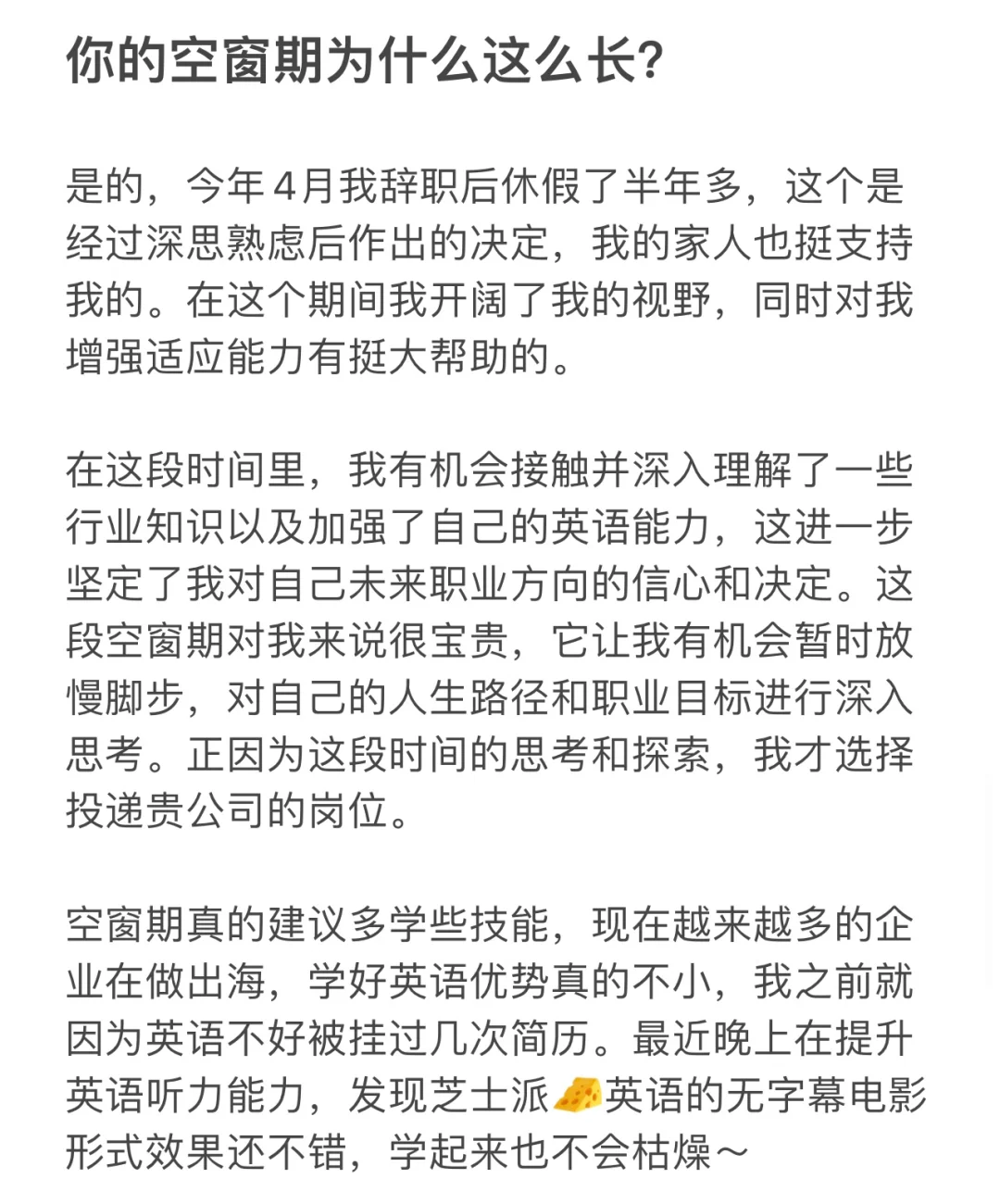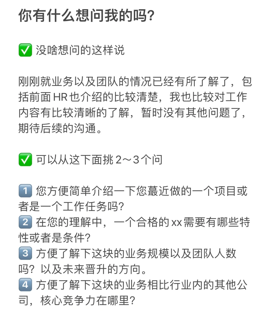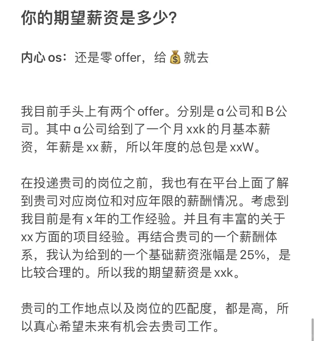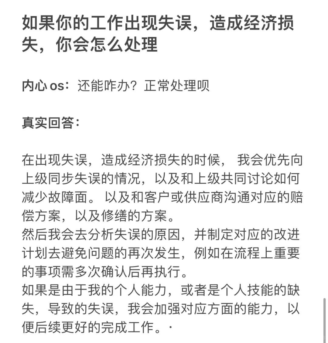 找工作全靠吹牛😅,真的挺爽 又到了一年金九银十。很多宝子发现面试机会相比以前多了,但是面的问题就是答不上来,面的问题都没有见过。 以我去年面了20家公司的经验来说,回答问题的时候,真的要学会扬长避短,多说自己的优点,面试真的会轻松不少。 而且面试真的要多面,面多几家公司就会发现,其实来来去去都是类似的问题。 下面就是一些我去年总结下来的一些常见面试题的回答,在找工作的宝子真的可以🐴住~ 1⃣️ 你的职业规划是什么? 内心os:我连面试完中午去吃什么都没规划,你一上来就让我规划个三五年? 2⃣️ 请做一下自我介绍 内心os:一进门就填了4页表,还拿着我的简历。还要我介绍啥😒 3⃣️ 你的缺点是什么? 内心os:性子急,接到活就想干完早点下班 4⃣️ 你的离职原因是什么? 内心os:钱少事多,加班还多。通勤时间一个半小时,真的顶不住😭 5⃣️ 你的空窗期为什么这么长? 内心os:旅游和休息了半年😄 空窗期真的建议多学些技能,现在越来越多的企业在做出海,学好英语优势真的不小,我之前就因为英语不好被挂过几次简历。最近晚上在提升英语听力能力,发现芝士派🧀英语的无字幕电影形式效果还不错,学起来也不会枯燥~ 6⃣️ 工作中和上级出现分歧会怎么处理? 内心os:都听上级的,不会发生分歧的😄 7⃣️ 你对加班怎么看? 内心os:月薪5k谁给你加班?给多少钱干多少事。 8⃣️ 如果你的工作出现失误,造成经济损失,你会怎么处理 内心os:还能咋办?正常处理呗 9⃣️你的期望薪资是多少? 内心os:还是零offer,给💰就去 #面试有秘招 #求职 #面试技巧 #求职经验侃侃谈 #面试 #找工作 #找工作啊找工作 #求职 #面试题 |