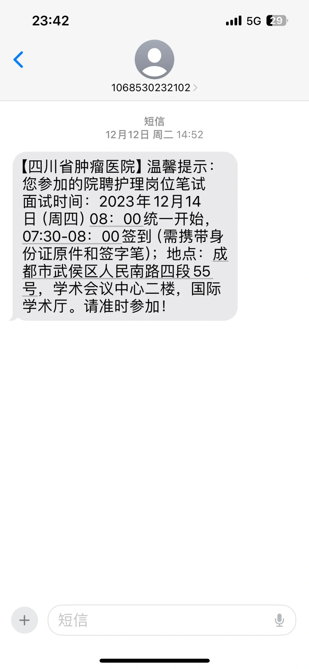 四川省肿瘤医院面试经验(护理岗-硕士) 🌟岗位:硕士是院聘,没有编制 🌟考核(包括笔试和面试) 1️⃣笔试:分为两块,专业知识和英语;专业知识考核我感觉范围挺广的,除了一些内外妇儿的基础知识,还夹杂着一点护理管理、护理研究和医学统计学(记不太清了,记得有一道题考到了PDCA循环)题量还行,60~100道题之间的样子,我也记不清了,全是客观题,单选和多选吧貌似。英语的话,分为两块,单选和阅读理解,单选侧重语法比较多(考了很多时态,还有一些词义辨析),总共20道题;阅读理解就跟四六级的阅读理解差不多(大概2~4个阅读理解,记不清楚了) 2️⃣面试:研究生是一个一个面的,本科生是群面。进去先自我介绍,不限时好像,然后就是一些提问,面试氛围还可以,老师们也都是随便提问的(被问到的问题:导师是谁,导师是医院的还是学院的,导师什么职务,研究方向,高考成绩等~)#护理研究生 #找工作 #护士 #医院🏥 #面试经验#四川省肿瘤医院 |