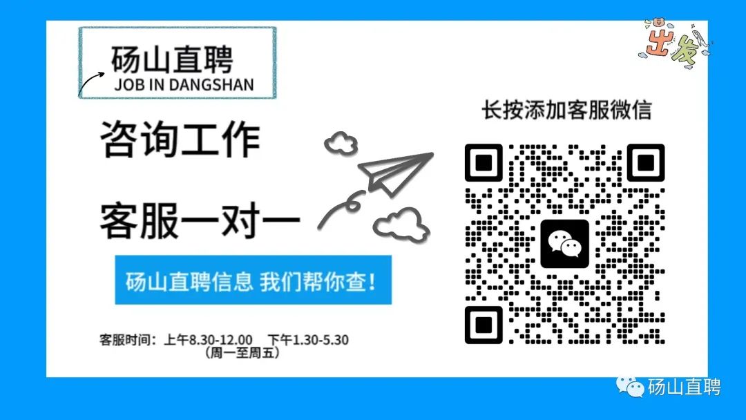Tips:如何申请职位? 1、点击【查看详情】进入企业详情页,点击岗位进入岗位详情页 2、点击按钮【申请职位】,即可申请❤ 3、还可以点击【在线聊】按钮,直接与企业对话哦 【砀山直聘】 找工作请添加客服微信 备注:找工作 让客服拉你进入【砀山工作推荐群】 扫二维码加客服小编微信 在线为你推荐好工作