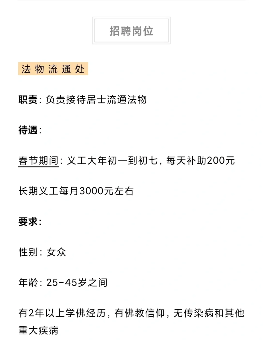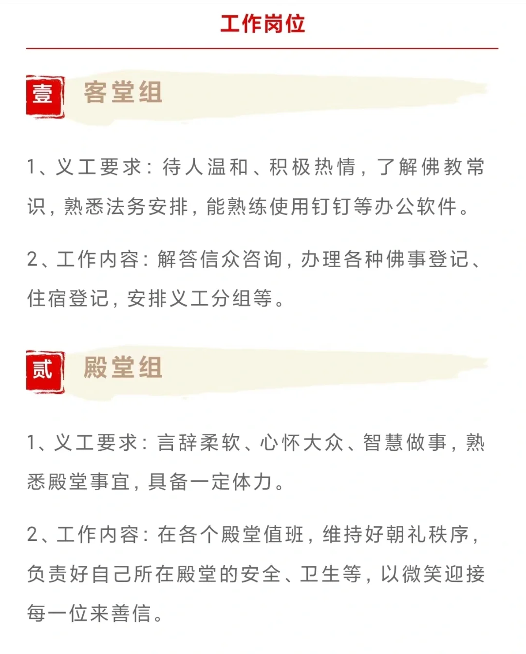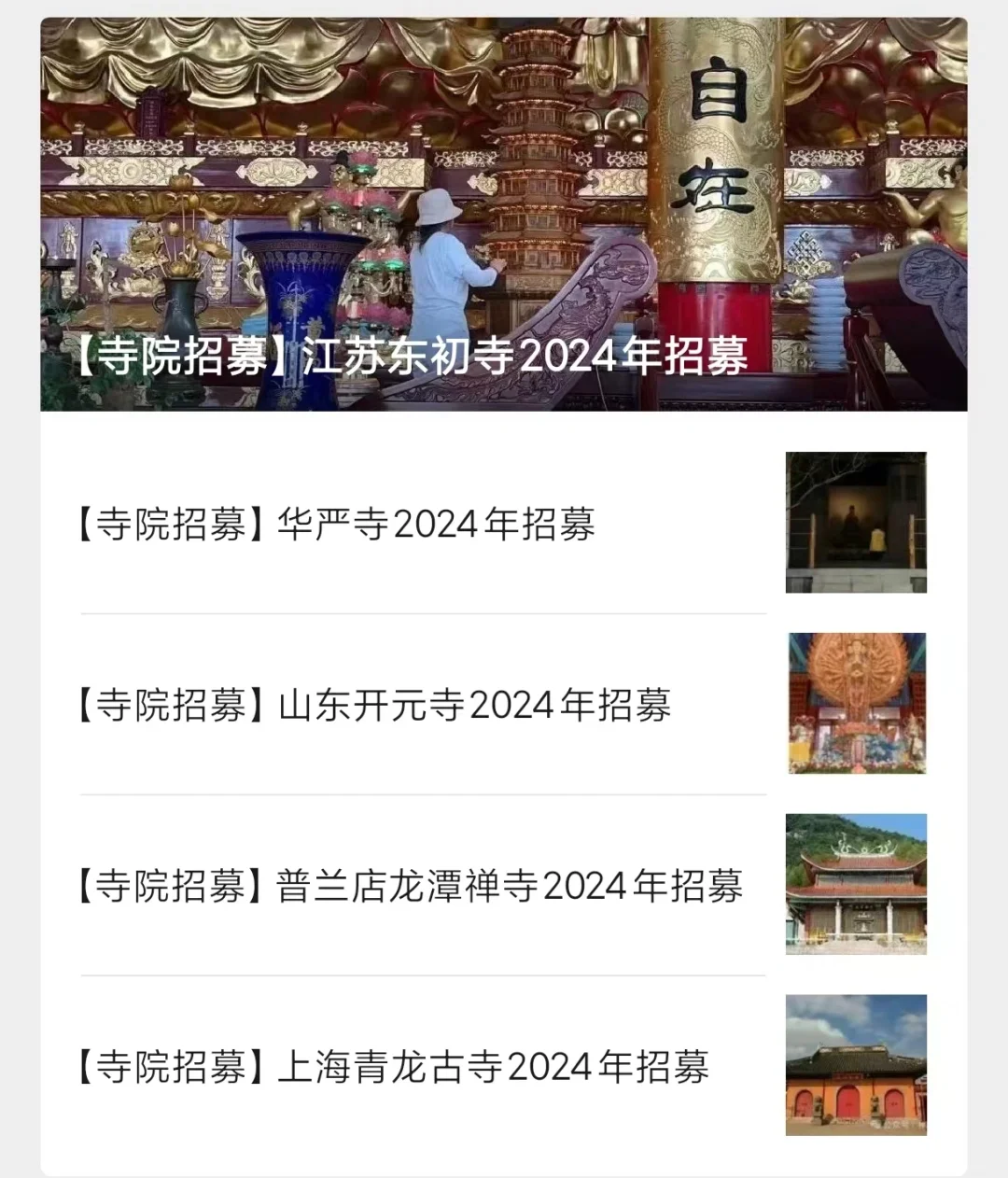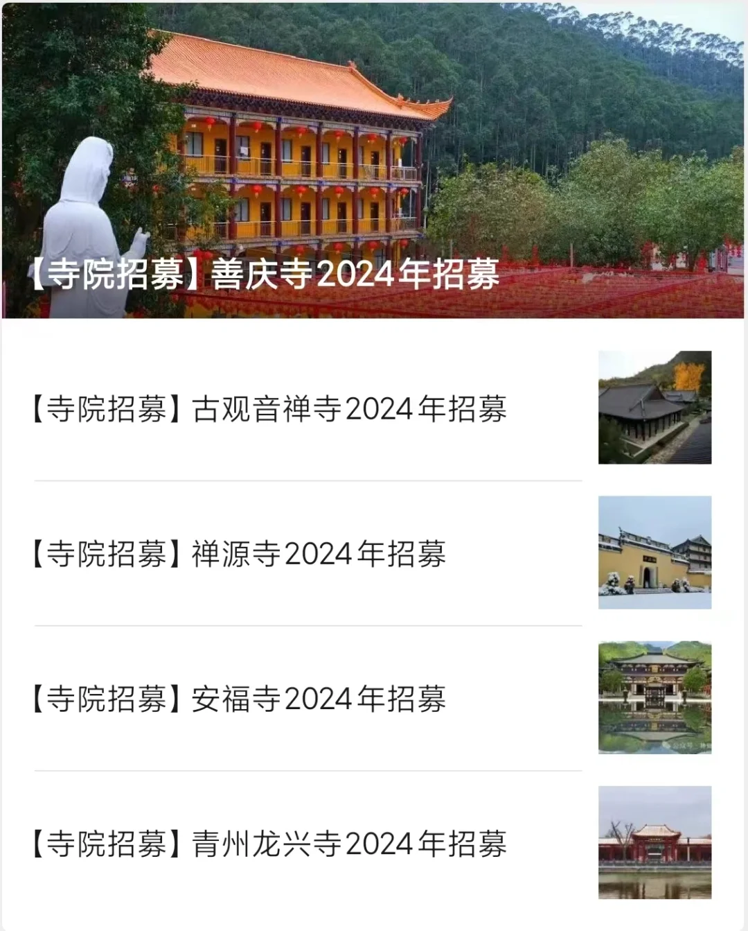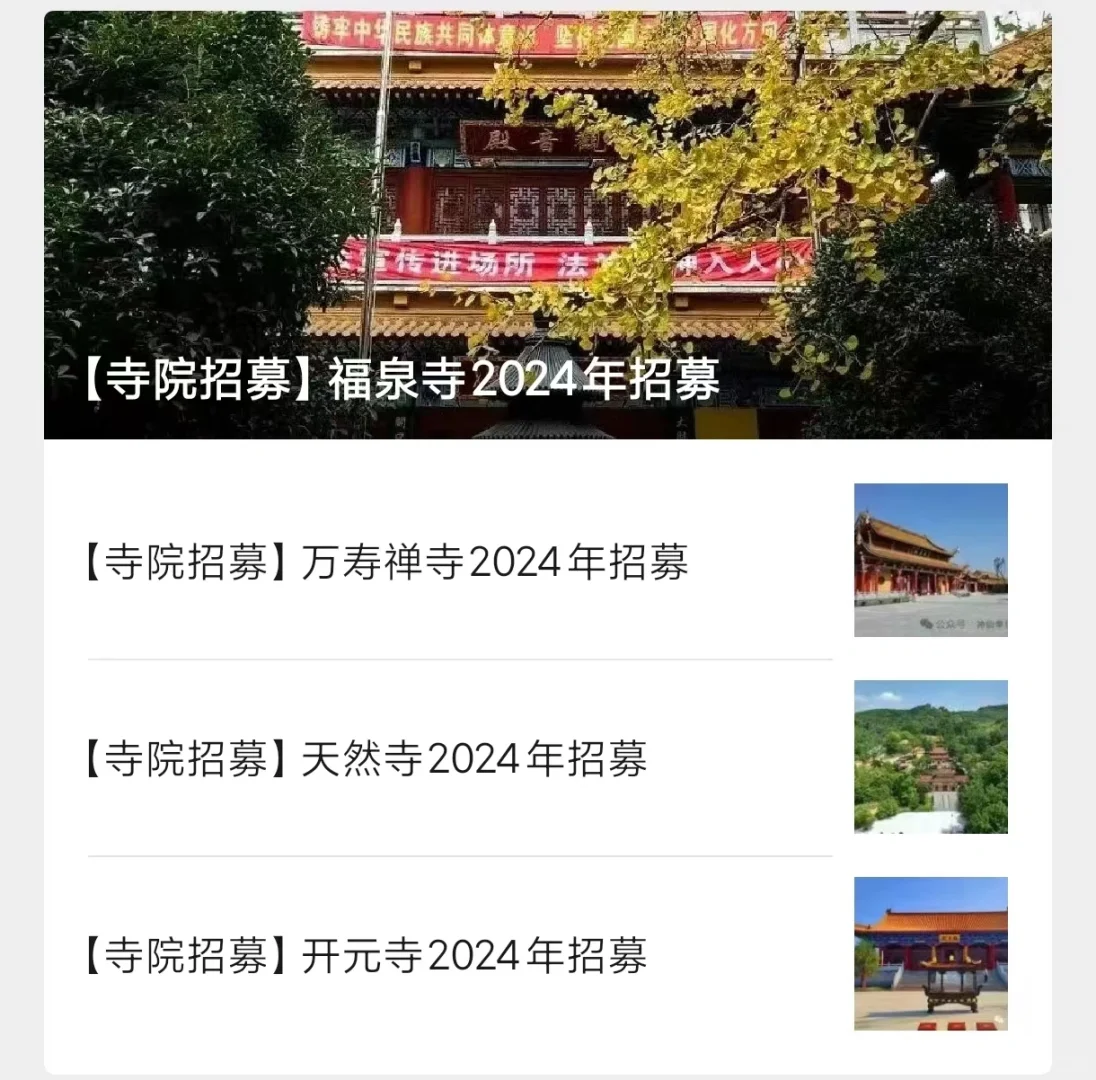 2024寺庙招聘‖不限男女‖不限年龄 帮大家汇总了一下24年新发布的一些寺庙招聘岗位,有报名的斯沃【寺院招募】善庆寺2024年招募 【寺院招募】古观音禅寺2024年招募 【寺院招募】禅源寺2024年招募 【寺院招募】安福寺2024年招募 【寺院招募】青州龙兴寺2024年招募 【寺院招募】福泉寺2024年招募 【寺院招募】万寿禅寺2024年招募 【寺院招募】大佛寺2024年招募 【寺院招募】山东开元寺2024年招募 【寺院招募】浙江阿育王寺2024年招募 【寺院招募】安福寺2024年招募 【寺院招募】南通东初寺2024年招募 【寺院招募】上海护国寺2024年招募 【寺院招募】同觉寺2024年招募 【寺院招募】福慧寺2024年招募 【寺院招募】种德禅寺2024年招募 【寺院招募】圣寿寺2024年招募 【寺院招募】兰风寺2024年招募 【寺院招募】般若寺2024年招募 【寺院招募】潮州开元寺2024年招募 【寺院招募】华岩寺2024年招募 【寺院招募】 法华禅寺2024年招募 【寺院招募】松山寺2024年招募 【寺院招募】驭龙寺2024年招募 【寺院招募】韶关·东华禅寺2024年招募 【寺院招聘】惠云讲寺2024年招募 【寺院招募】香山禅寺2024年招募 【寺院招募】三井寺2024年招募 【寺院招募】东岳庙2024年招募 【寺院招募】青龙古寺2024年招募 【寺院招募】重元寺2024年招募 【寺院招募】宝林寺2024年招募 【寺院招募】东岳庙2024年招募 【寺院招募】香山禅寺2024年招募#寺庙义工 #寺庙招聘 #寺庙工作 #寺庙 #道观 |