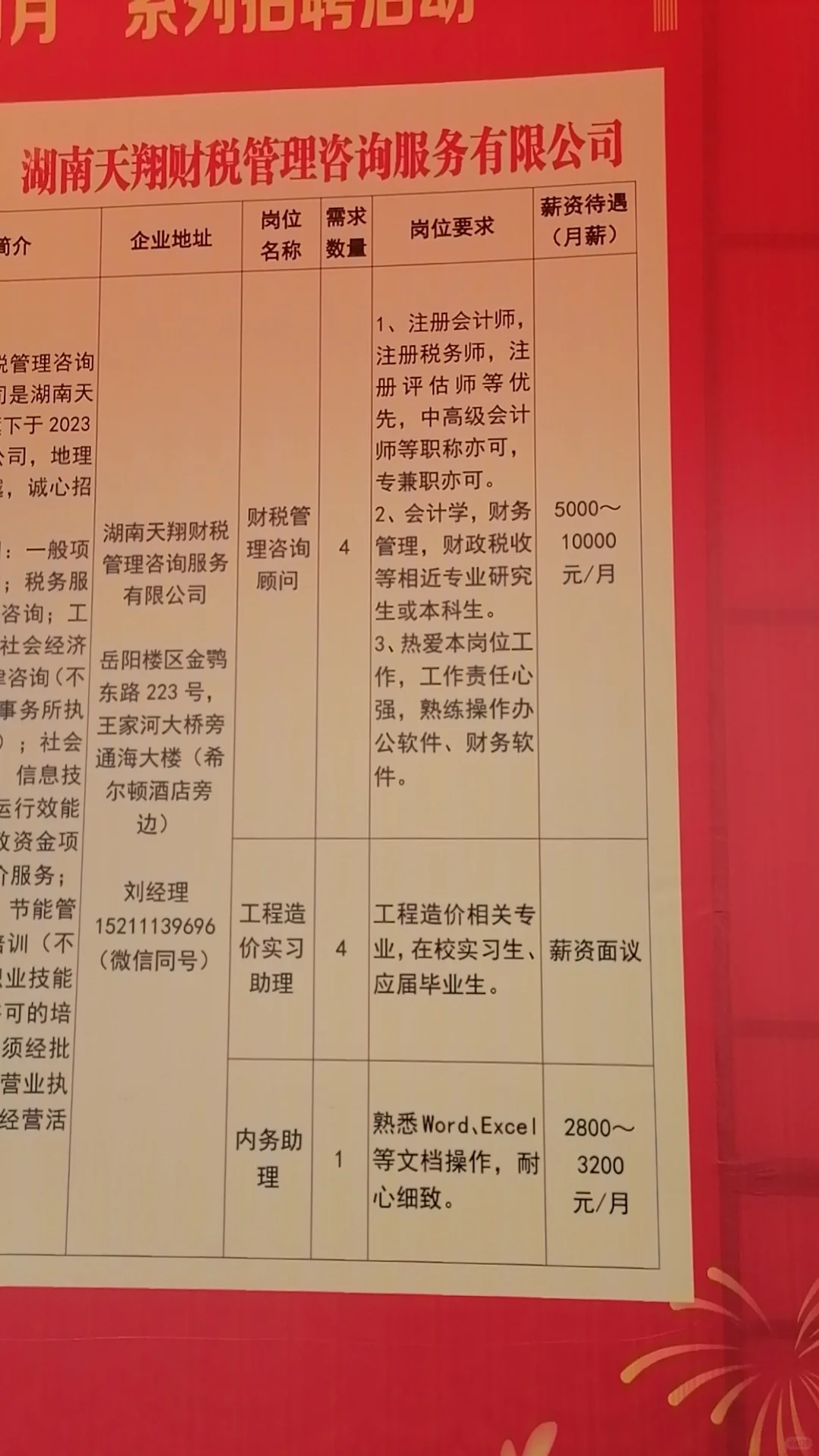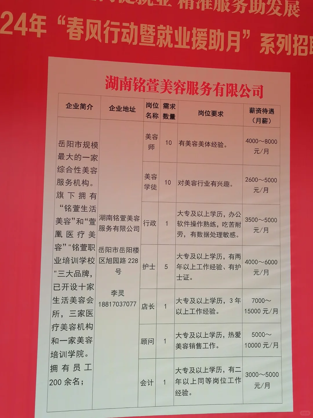 岳阳找工作 #找工作啊找工作 #找工作 今天面试了两家公司 1.遇见婚姻公司 岗位:前台 地点:深蓝时代16楼 连锁店介绍说全国80家店 薪资:3500底薪+500绩效+招人奖励新员工入职3个月奖100 上班时间:10点到7点 需要自己带饭 没有午休但是人不多的话可以休息一下 打卡:通过钉钉 月休6天大小休,休周一和周二 前台只有一个 前期没人带没人交接有事都找店长 其他没怎么问,店长给人的感觉挺干练严厉的 说是招前台个人认为更偏向于人事因为他们店的前台要负责招聘 2.湘北武术馆 岗位:前台 上班地点:洞氮和南湖 底薪:2400+课消(200多个小朋友一节课1.5每周来一次,课消一个月大概1200)+提成(老顾客续费2个点不强制销售哦) 上班时间:9.00-18.00 午休2小时 包吃 月休4天,固定周一休 节假日放假:(比如国庆5天假公司就会放3天节假日当天一定放假) 公司不买五险 试用期7天 人员:南湖店一个前台一个店长3个教练基本上就是5个人 早上晚上集合通过钉钉打卡下班 在上一个帖子里面看到有姐妹说今天南湖有招聘会我给大家拍了些文职岗位库管方向(因为有想转库管),普工也有想着给我妈看的哈哈哈 明天我就要去湘北武术馆报道啦去试一下,对我而言这份工作不知道能学到什么但是也是全新的行业,工资3500左右离得也不是很远,我个人也能接受了还包吃午饭呢,自己之前找了个兼职一个月500块钱,每天花个20分钟统计下数据就OK了 |