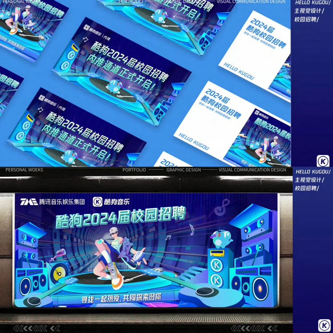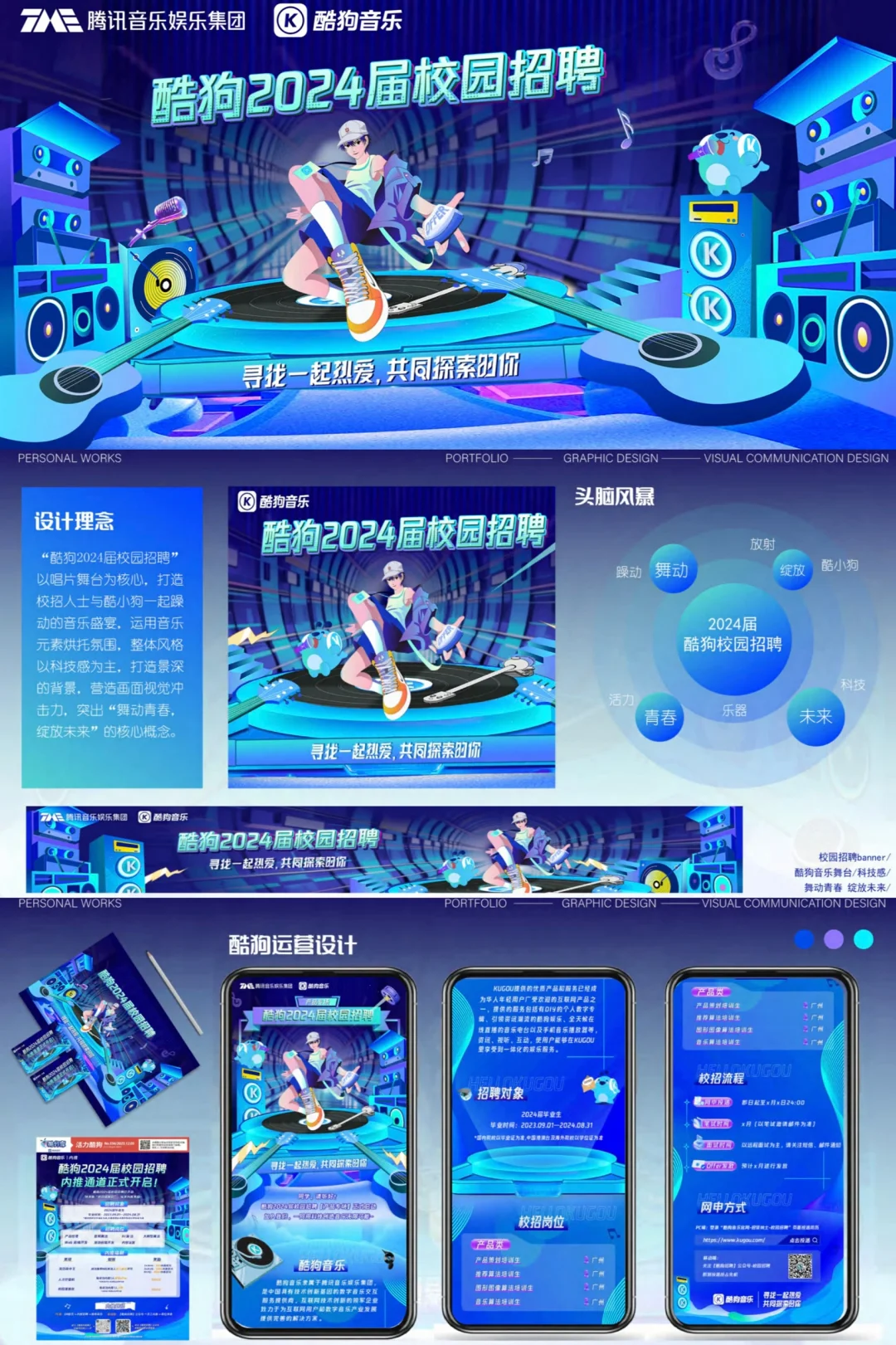 💙今年主要负责酷狗2024届校园招聘主视觉设计,也是最有成就感的一个项目啦,带给我很多收获和成长!