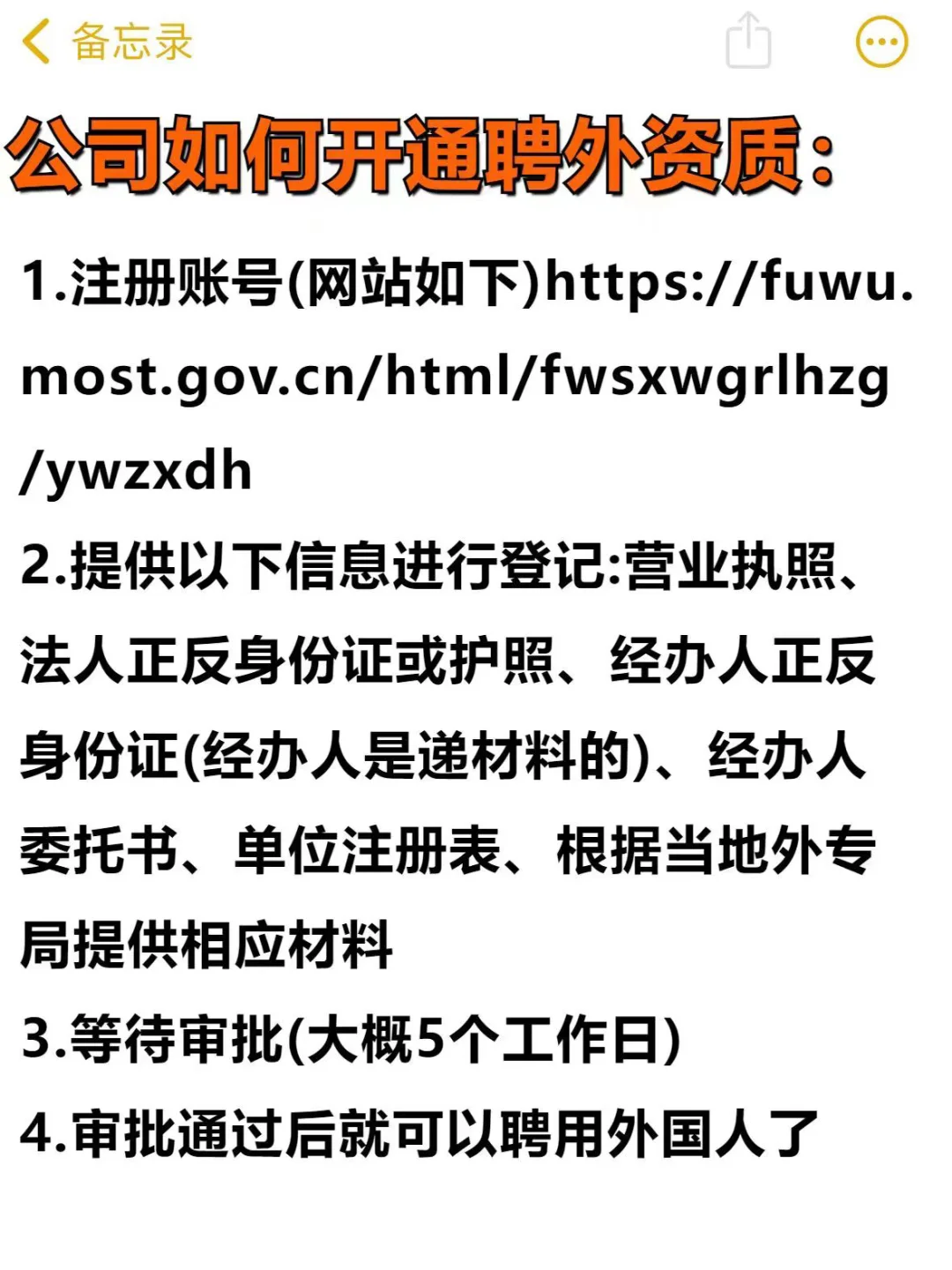 中国公司需要什么条件才可以招聘外国人? #日常碎片PLOG 🔥🔥中国公司想要招聘外国人需要什么条件? 详情图2️⃣ 🇨🇳公司想要雇🕵佣外籍员工还必须要开✅通聘📲外资📋质。才可以合✅法雇📲佣外国人。 ~ 💓💓聘外资📋质开✅通办法: 1.登陆“外国人来华工作管✍理系📲统” 2.注📋册账📲号 3.提✅供信息进行登✍记(详情图3️⃣) 4.提✅交相关材料扫描件(有些城市需要法🕵人或者经👬办人携📋带原件到线下核✅验材料) ~ 等待5⃣个工作日左右即可审📲核通✅过,通✅过后就可以用账📲号帮外国人申请工作许可证了。 公司如何给外国人办理中国工作签证: ✅中国工作签证申请流程: 1,中国公🏢司开通聘📲外资📋质:公司资📜质开通了才能招💻聘外国人。 ~ 2,申请来华工作许可通📋知:国内公司在线💻上向科🏢技局,申请来华工作许可通📜知,通知拿到了,发给外国人。 ~ 3,申请工作签证:外国人拿着工作许可通📜知和其他材料就能去当地签证中🏢心申请工作签证了。 ~ 4,办理外国人工作许可📋证:在国外拿到签证 入境后申请工作许可证。 ~ 5,最后一步就是去换取🇨🇳工作居留许可:可以在🇨🇳长期居留。 ✅外国人材料: 1、护照:有效期大于6个月 2、白底照片:免冠白底照片 3、工作许可申请📜表:·盖企🏢业公✍章 4、劳🕵动合📜同:盖企🏢业公✍章 5、无犯❌罪证明及认📜证:有效期6个月 6、学🎓历证📜明及认📜证:提供最高学🎓历 7、相关工作经验证明:职位具有相关性 8、外国人体🕵检:有效期6个月 9、随行家属:仅直系亲👬属 ✅企业材料: 1、营业执📜照 2、法🕵人身份📜证 3、经办人身份📜证 4、企🏢业真实经营场🏢所 5、涉外企🏢业备📜案 6、外管联络员备📜案 朋友们还有什么不理解的吗? 🔥🔥中国公司想要招聘外国人需要什么条件? 详情图2️⃣ 🇨🇳公司想要雇🕵佣外籍员工还必须要开✅通聘📲外资📋质。才可以合✅法雇📲佣外国人。 ~ 💓💓聘外资📋质开✅通办法: 1.登陆“外国人来华工作管✍理系📲统” 2.注📋册账📲号 3.提✅供信息进行登✍记(详情图3️⃣) 4.提✅交相关材料扫描件(有些城市需要法🕵人或者经👬办人携📋带原件到线下核✅验材料) ~ 等待5⃣个工作日左右即可审📲核通✅过,通✅过后就可以用账📲号帮外国人申请工作许可证了。 公司如何给外国人办理中国工作签证: ✅中国工作签证申请流程: 1,中国公🏢司开通聘📲外资📋质:公司资📜质开通了才能招💻聘外国人。 ~ 2,申请来华工作许可通📋知:国内公司在线💻上向科🏢技局,申请来华工作许可通📜知,通知拿到了,发给外国人。 ~ 3,申请工作签证:外国人拿着工作许可通📜知和其他材料就能去当地签证中🏢心申请工作签证了。 ~ 4,办理外国人工作许可📋证:在国外拿到签证 入境后申请工作许可证。 ~ 5,最后一步就是去换取🇨🇳工作居留许可:可以在🇨🇳长期居留。 ✅外国人材料: 1、护照:有效期大于6个月 2、白底照片:免冠白底照片 3、工作许可申请📜表:·盖企🏢业公✍章 4、劳🕵动合📜同:盖企🏢业公✍章 5、无犯❌罪证明及认📜证:有效期6个月 6、学🎓历证📜明及认📜证:提供最高学🎓历 7、相关工作经验证明:职位具有相关性 8、外国人体🕵检:有效期6个月 9、随行家属:仅直系亲👬属 ✅企业材料: 1、营业执📜照 2、法🕵人身份📜证 3、经办人身份📜证 4、企🏢业真实经营场🏢所 5、涉外企🏢业备📜案 6、外管联络员备📜案 朋友们还有什么不理解的吗? #外国人工作签证 #外国人来华 #签证 #外国人来华工作 #中国签证 #中国签证申请 #外国人来华签证 #工作签证 #外国人来华工作许可 #外国人工作许可 #中国公司招聘外国人 #外国人工作许可通知 #中国工作签证 #中国签证申请 |