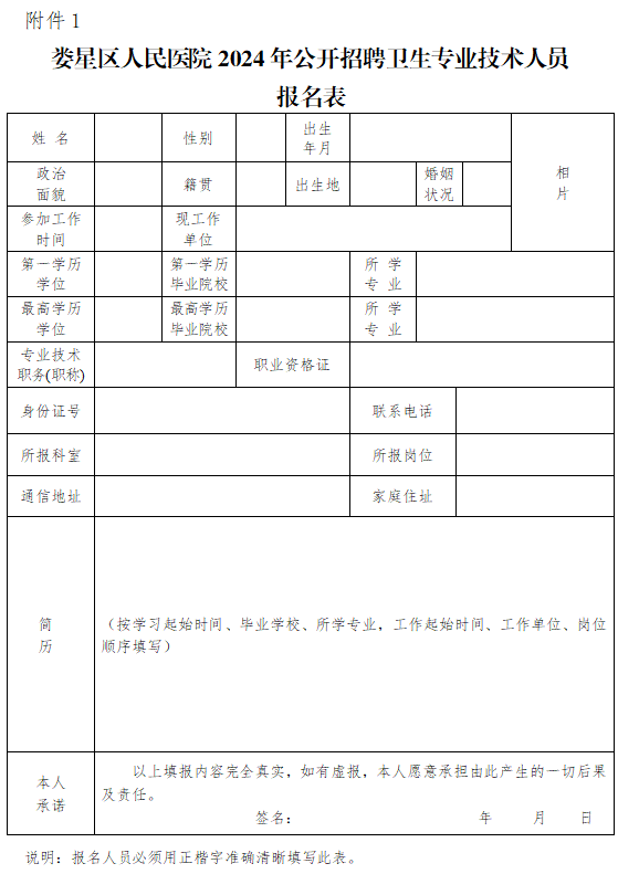 2024年娄底市娄星区人民医院公开招聘卫生专业技术人员公告 娄星区人民医院坐落于娄底市中心城区,始建于1979年,是娄星区唯一一家政府隶属的非营利性综合性二级甲等综合医院和二级甲等妇幼保健院,承担着娄星区75.25万人的基本医疗、妇幼保健等工作。医院编制床位792张,现有职工800余人,其中专业技术人员780人(高级职称116人)。医院实行“一院两区”一体化管理模式,老院区开设了儿科、儿科急诊、儿童保健康复科、健康管理中心等科室,新院区开设了内科、外科、急诊科、重症医学科、妇产科、新生儿科等临床及医技科室。医院的学科建设在中南大学湘雅医院和湖南省儿童医院等上级医院的对口支援下效果显著,儿科、妇产科为湖南省县级医院省级临床重点专科。 为进一步加强我院人才队伍建设,满足学科业务发展需求,结合我院人才需求实际情况,决定公开招聘卫生专业技术人员。现公告如下: 一、招聘计划 本次招聘计划医生20名,护士20名,共计40名(具体岗位计划见附件2),均为合同制人员。 二、招聘原则 (一)坚持德才兼备的用人标准; (二)坚持公开、平等、竞争、择优的原则; (三)坚持工作需要,人岗相适,注重综合能力和专业知识相结合。 三、资格条件 (一)应聘人员除需要符合《娄星区人民医院2024年公开招聘卫生专业技术人员岗位及要求一览表》(附件2)确定的要求外,同时还必须具备以下基本条件: 1.具有中华人民共和国国籍; 2.遵守中华人民共和国宪法和法律; 3.具有良好的品行和职业道德; 4.具有报考岗位所需的专业知识和技能条件; 5.具有正常履行职责的身体条件,五官端正,肢体健全,口齿清楚,身体健康; 6.符合报考岗位所需的其他条件。 (二)年龄条件 医生系列和专科护理系列要求30周岁及以下(1994年1月1日以后出生);护理系列要求28周岁及以下(1996年1月1日以后出生)。 (三)身高条件 专科护理和护理系列女性身高1.56米及以上,男性身高1.65米及以上。 (四)有下列情形之一者不得报名应聘: 1.曾因犯罪受过刑事处罚的人员或曾被开除公职的人员; 2.受纪律处分在处分期内的,尚未解除党纪、政纪处分或正在接受纪律审查的人员; 3.涉嫌违法犯罪正在接受司法调查尚未作出结论的人员; 4.在各级各类事业单位公开招聘中因违反《事业单位公开招聘违纪违规行为处理规定》等不良记录的人员; 5.有弄虚作假行为的人员; 6.法律、政策规定不得聘用为事业单位工作人员的其他情形的人员。 四、招聘程序 招聘工作按发布招聘公告、报名、资格审查、考试(笔试、面试)、体检、考察、公示、录用等程序进行。 (一)公告 招聘公告通过湖南人才网、娄星区人民医院官方网站及微信公众平台等媒体进行发布。 (二)报名及资格审查 1.报名方式、时间、地点 采取现场报名和网络报名相结合的方式。 (1)现场报名。时间为2024年3月6日至8日(上午8:00-12:00,下午14:30-17:30),报名地点设娄星区人民医院新院区门诊楼五楼二会议室。 (2)网络报名。医生可选择网络报名的方式,时间为3月6日至12日,应聘人员将报名材料上传到邮箱:1592291749@qq.com。 2.报名材料 (1)报名人员须根据招聘岗位要求,提交《娄星区人民医院2024年公开招聘卫生专业技术人员报名表》(附件1); (2)携本人有效身份证原件和复印件一份; (3)学历证、教育部学历证书电子注册备案表(学信网)、资格证、规培证等相关证件的原件、复印件; (4)应届毕业生在报名时可先提供学校推荐表,在签订劳动合同时必须提供毕业证及学位证原件;2024年毕业的规培医师在报名时可先提供所在规培医院的证明,在签订劳动合同时必须提供规培证或规培成绩合格单,否则不予聘用; (5)本人近期1寸免冠半身红底证件照3张。 3.资格审查 报名确认截止后,由公开招聘领导小组办公室组织院纪检、人事科、医务科、护理部根据岗位要求对应聘人员进行资格审查,应聘人员提交的所有材料必须真实有效,如发现弄虚作假者,取消应聘资格。资格审查的情况报公开招聘领导小组审定,各系列通过资格审查的报考人数为有效报考人数。 4.岗位调剂 根据报名和资格初审情况,结合单位实际需求,公开招聘领导小组可对招聘岗位进行调剂。 5.本次招聘不收取报名费。 (三)考试 1.笔试 临床医学专业原则上按1:2的比例开考,护理专业原则上按1:3的比例开考,如人数未达到开考比例,由公开招聘领导小组研究决定是否进行调整。 (1)考试时间和地点:待定,具体时间和地点以本人准考证上信息为准,领取准考证的时间和地点在娄星区人民医院官方网站及微信公众平台等媒体上予以通知。 (2)考试内容:报考岗位对应的基础知识和专业知识。 2.面试 时间:待定,见面试公告 地点:待定,见面试公告 (1)面试对象的确定:根据笔试成绩,分岗位从高分到低分按招聘计划数参加面试。原则上按照1:2比例参加面试,如未达到面试比例人数,由公开招聘领导小组研究决定是否调整。 (2)面试方式:抽签答题(40分),实践操作(60分)。 (3)面试答题时间:6分钟/人;实践操作时间按具体操作模块规定时间。 3.综合成绩计算方式 理论考试满分100分,面试成绩满分100分。理论考试成绩占总成绩的50%,面试成绩占总成绩的50%。综合成绩=理论考试成绩*50%+面试成绩*50%。综合成绩低于60分者不予录用,综合成绩相同者录取实践操作成绩高的考生。综合成绩一年内有效,根据综合成绩,在医院出