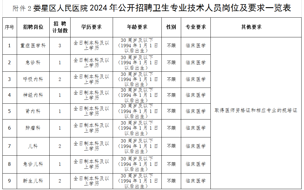 2.娄星区人民医院2024年公开招聘卫生专业技术人员岗位及要求一览表(点击可放大)